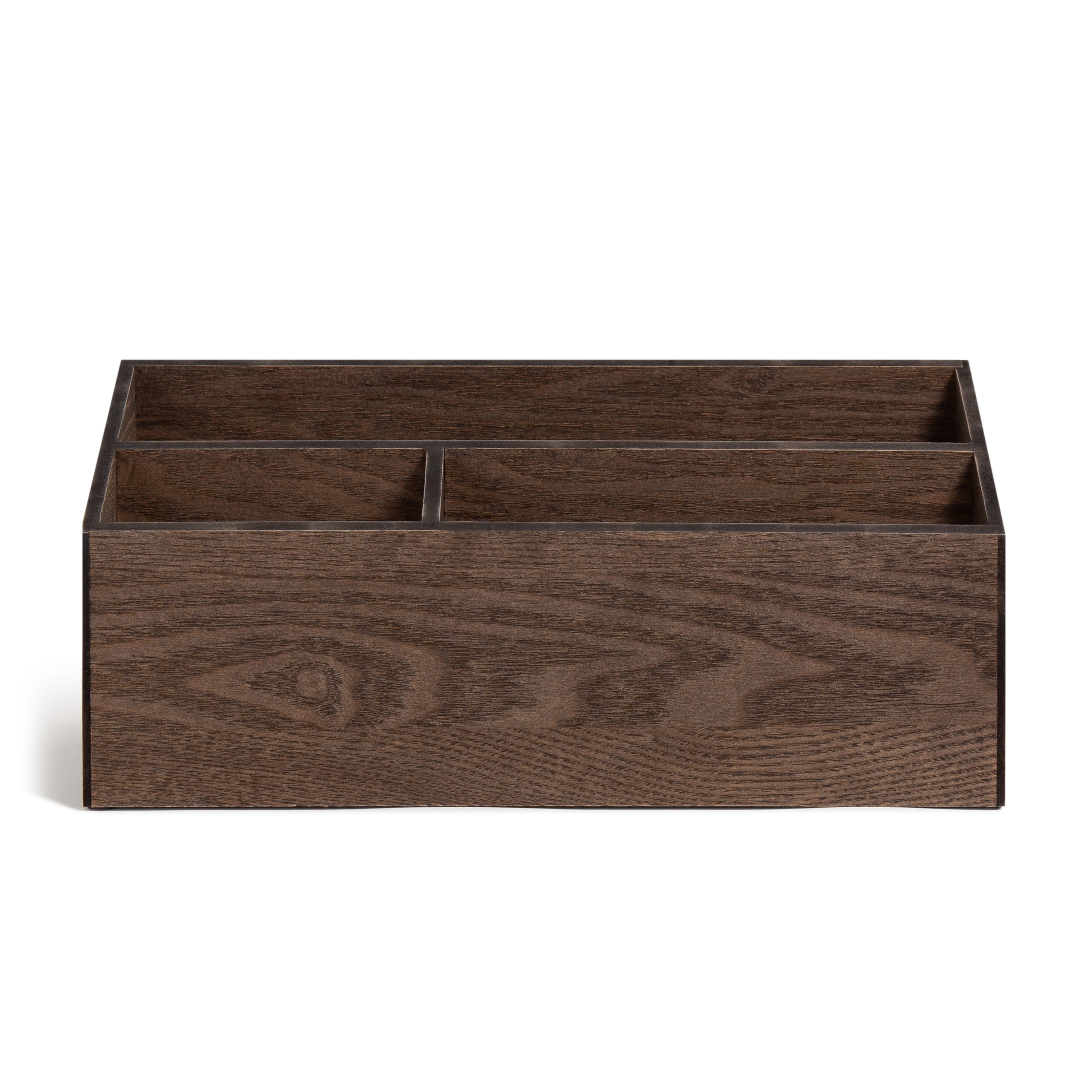 U Brands Wooden Desk Storage Bin, Dark Brown Wood, 3 Compartments, 5393U