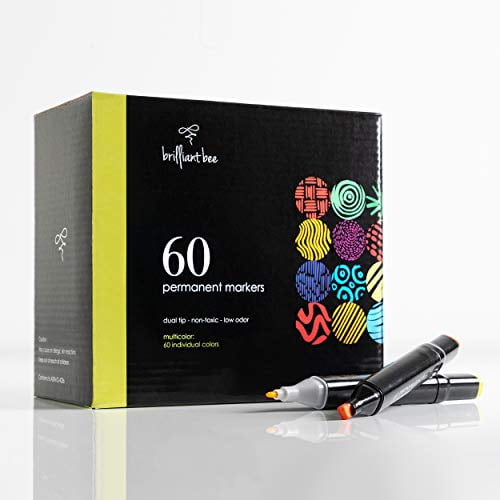 You’ll be fully equipped for any art project that comes your way with Brilliant Bee’s 60 Pack of Dual-Tip Permanent Markers. Featuring long lasting, acid-free, and non-toxic ink, these markers are great for a wide variety of projects. Artists and designers will enjoy the dual-tip design—the 7mm broad tip is perfect for filling large areas with vibrant color, while the 1mm fine tip is designed for more detailed applications. Key FeaturesReversible Tip – 7mm Broad Tip/1mm Fine TipNon-toxic, fade resistant inkLow-odorWide range of colors, from vibrant to subtle