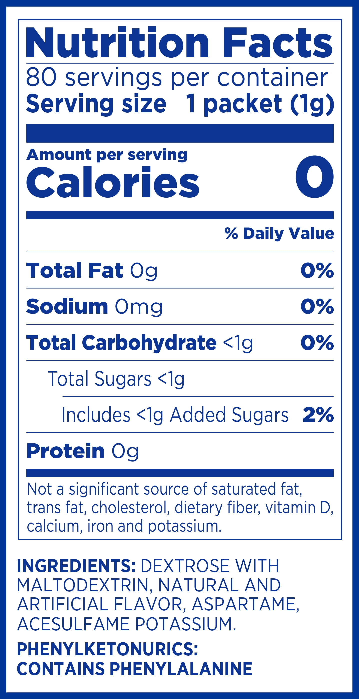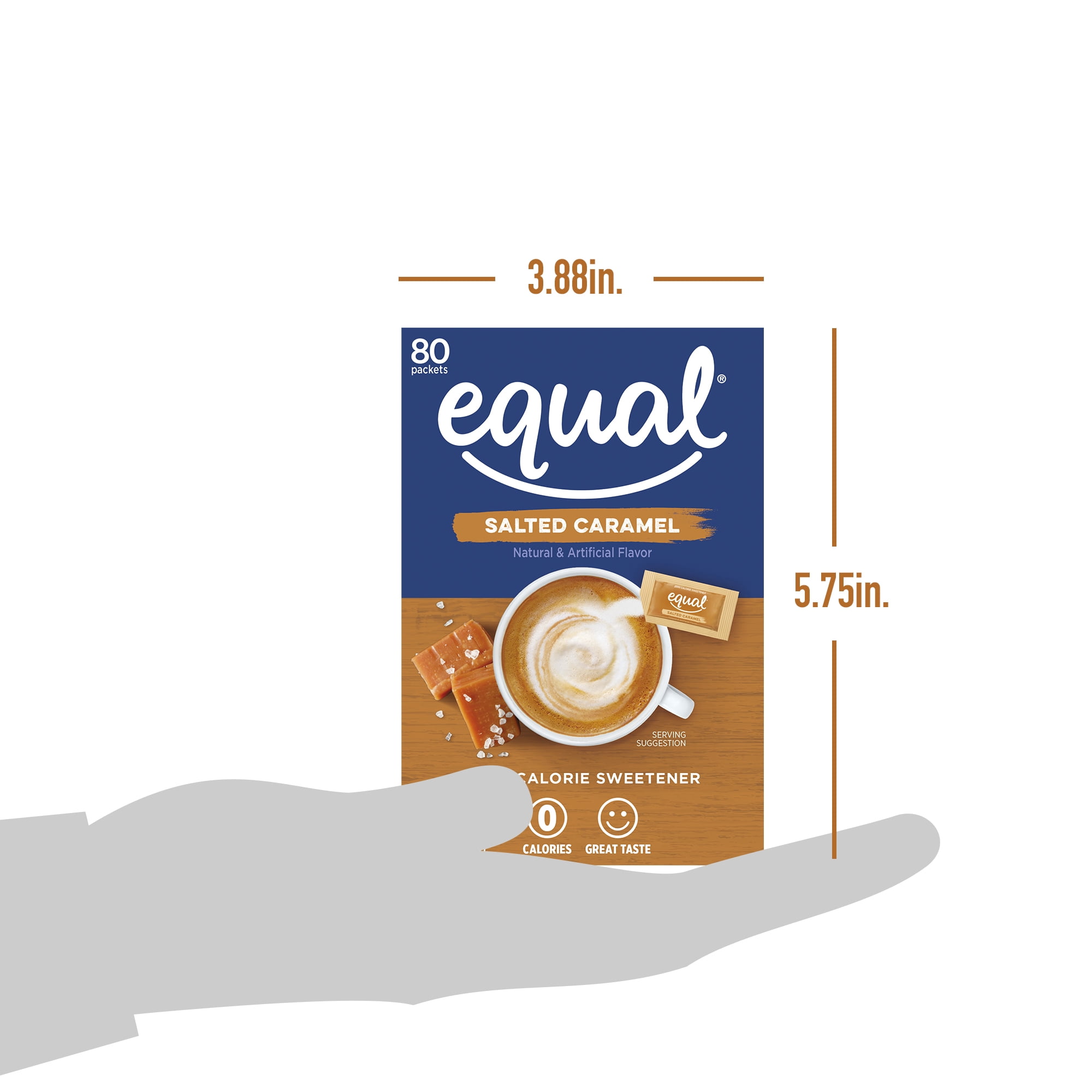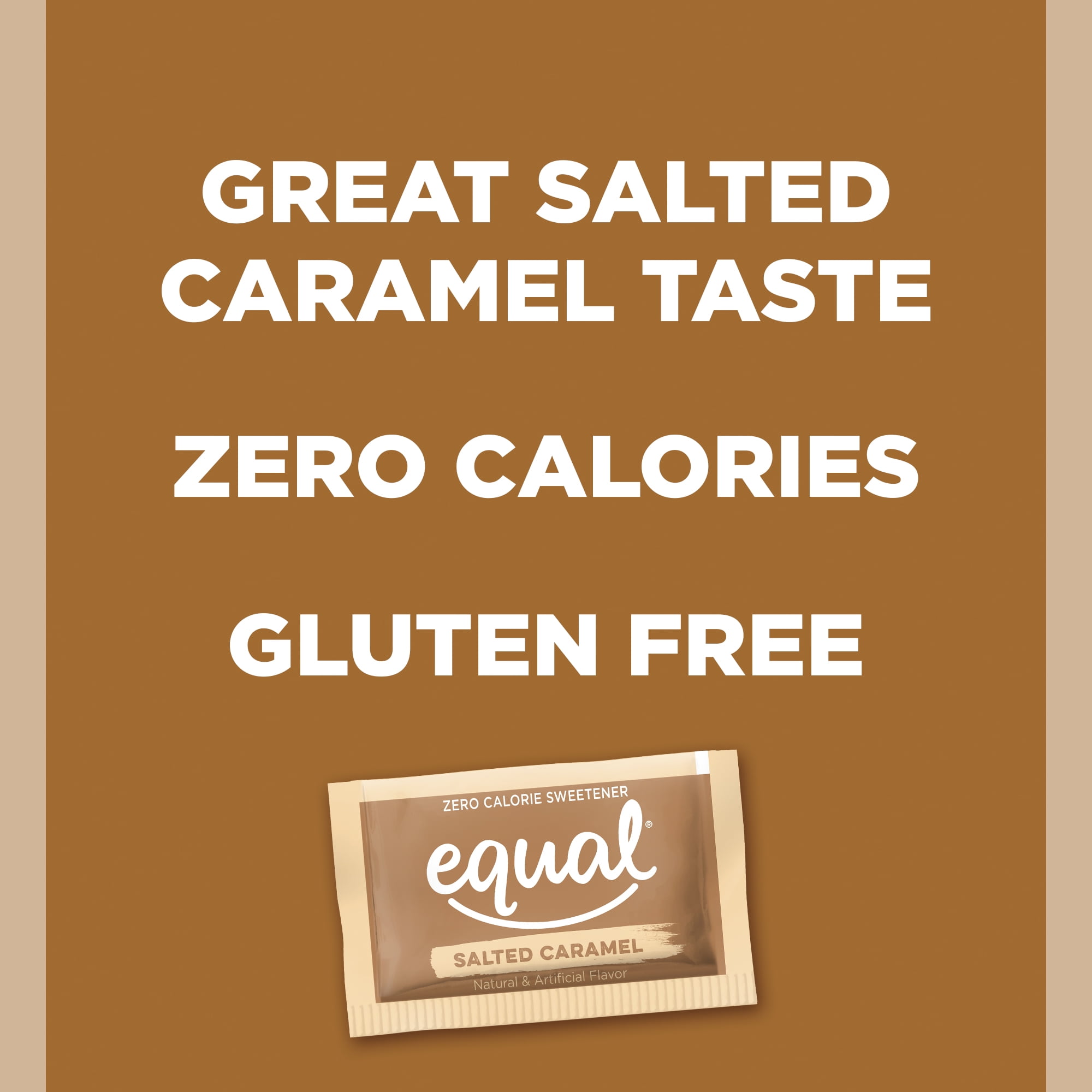EQUAL SALTED CARAMEL ZERO CALORIE SWEETENER is an aspartame sugar substitute sweetener with zero calories, Equal sweetness, now with Salted Caramel flavor. EQUAL SALTED CARAMEL ZERO CALORIE SWEETENER is great in coffee, tea, and more. EQUAL SALTED CARAMEL ZERO CALORIE SWEETENER contains 80 packets per carton.
