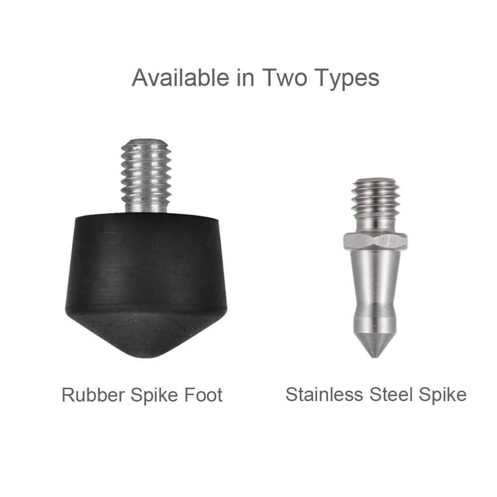 - The universal anti-skid rubber foot spikes are designed to prevent the tripod from slipping on smooth surfaces and provide extra stability on uneven terrain.