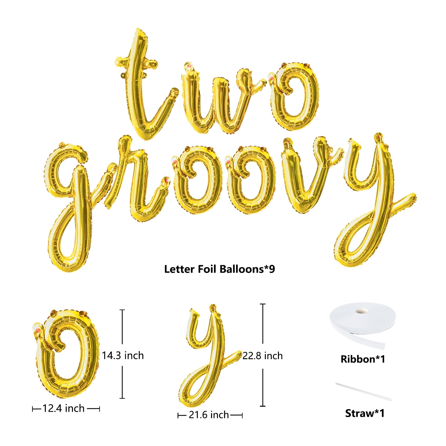 A1diee Two Groovy Cursive Script Letter Balloons Set Gold Alphabet Foil Mylar Balloons Banner Party Decoration Groovy Retro Hippie Boho Letter Balloons for 2nd Baby Birthday Party Supplies Favors