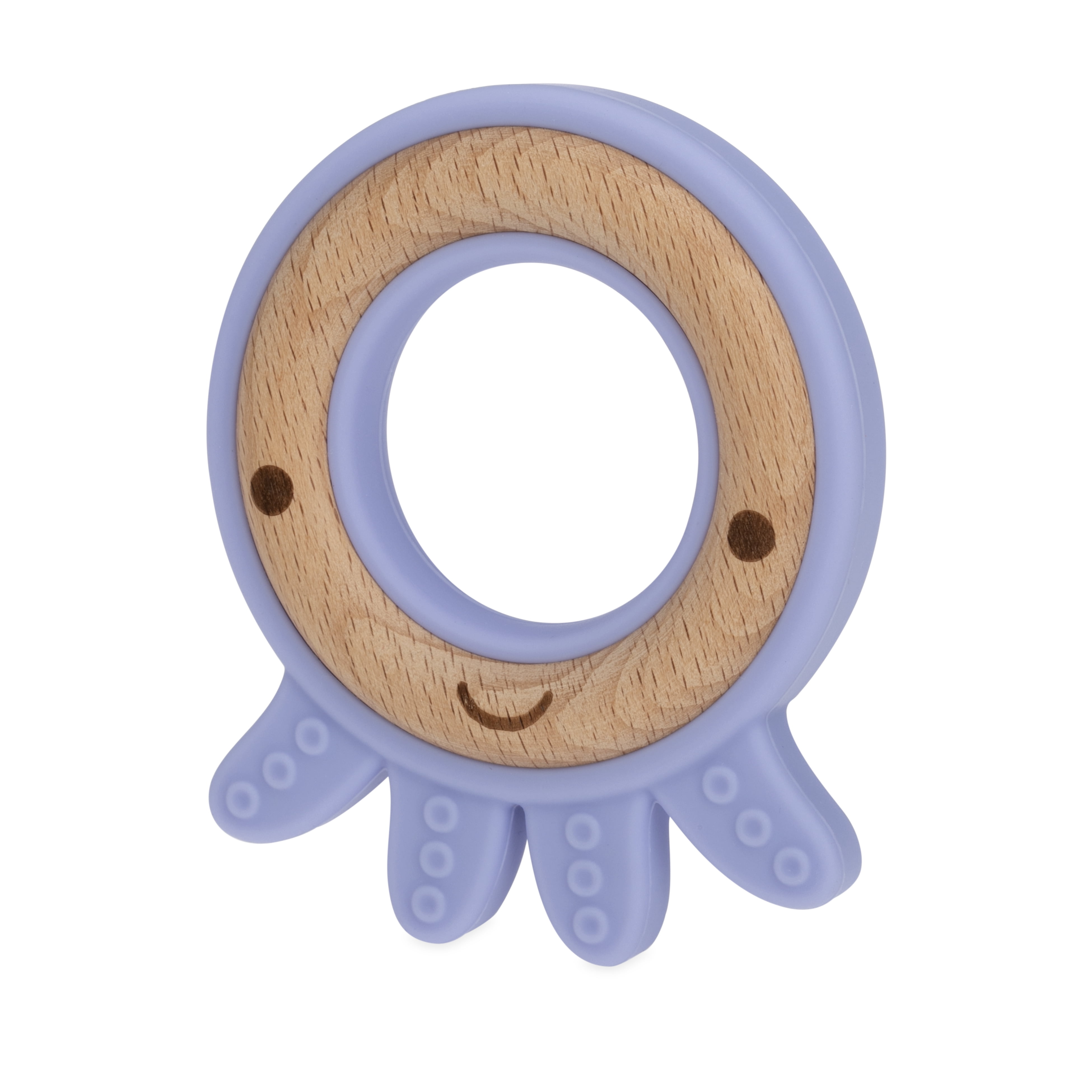 Nuby Natural, Silicone and Wood Teether, Purple Octopus