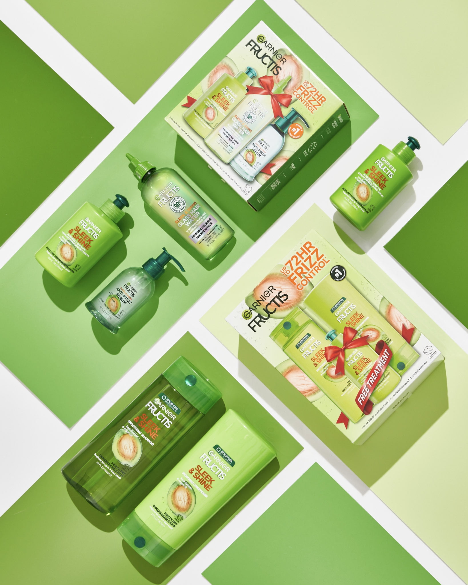 ($15 Value) Garnier Fructis Sleek & Shine Shampoo, Conditioner and Treatment Gift Set, 1 Kit
