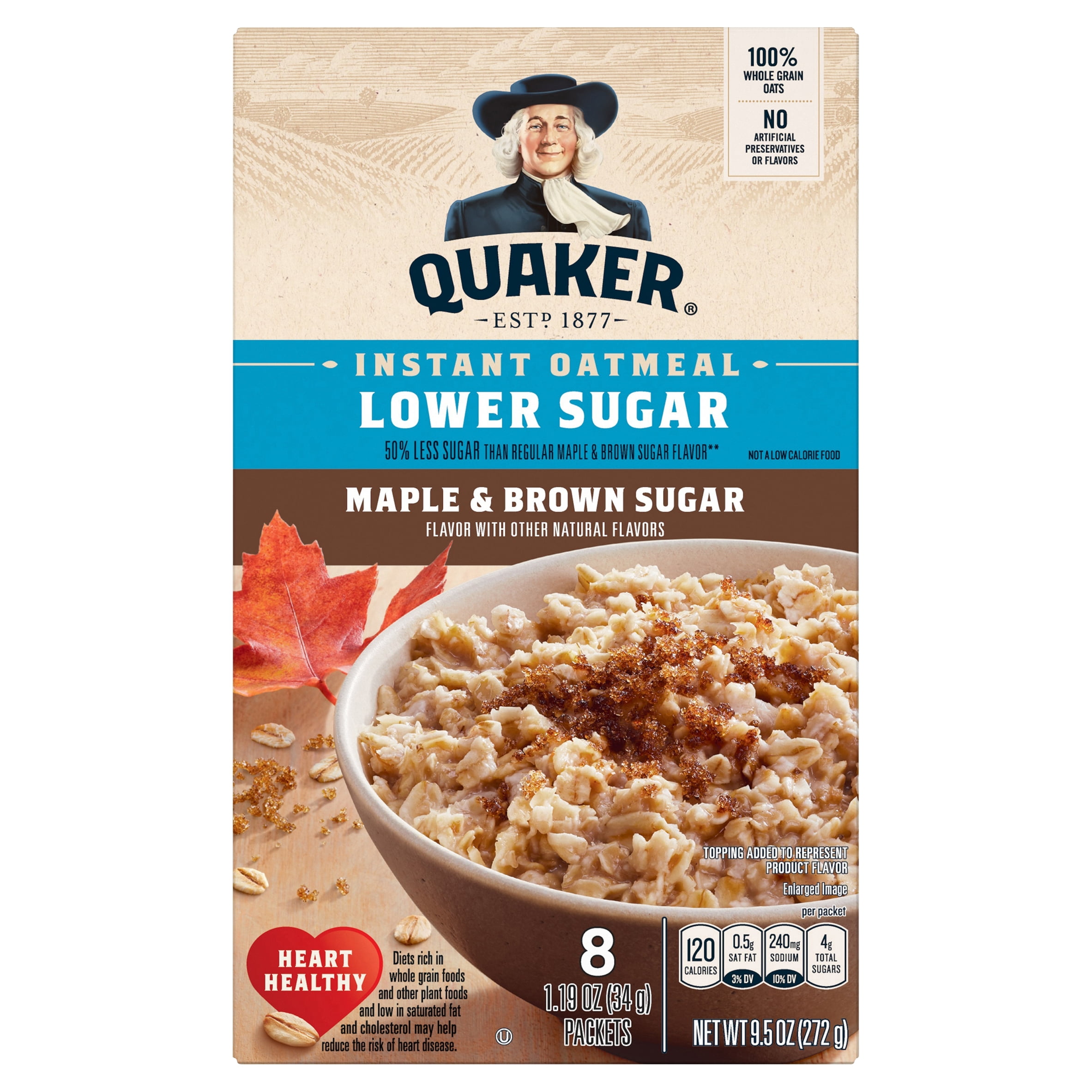 Quaker Instant Oatmeal Lower Sugar Maple Brown Sugar 9.5 oz, 8 Packets