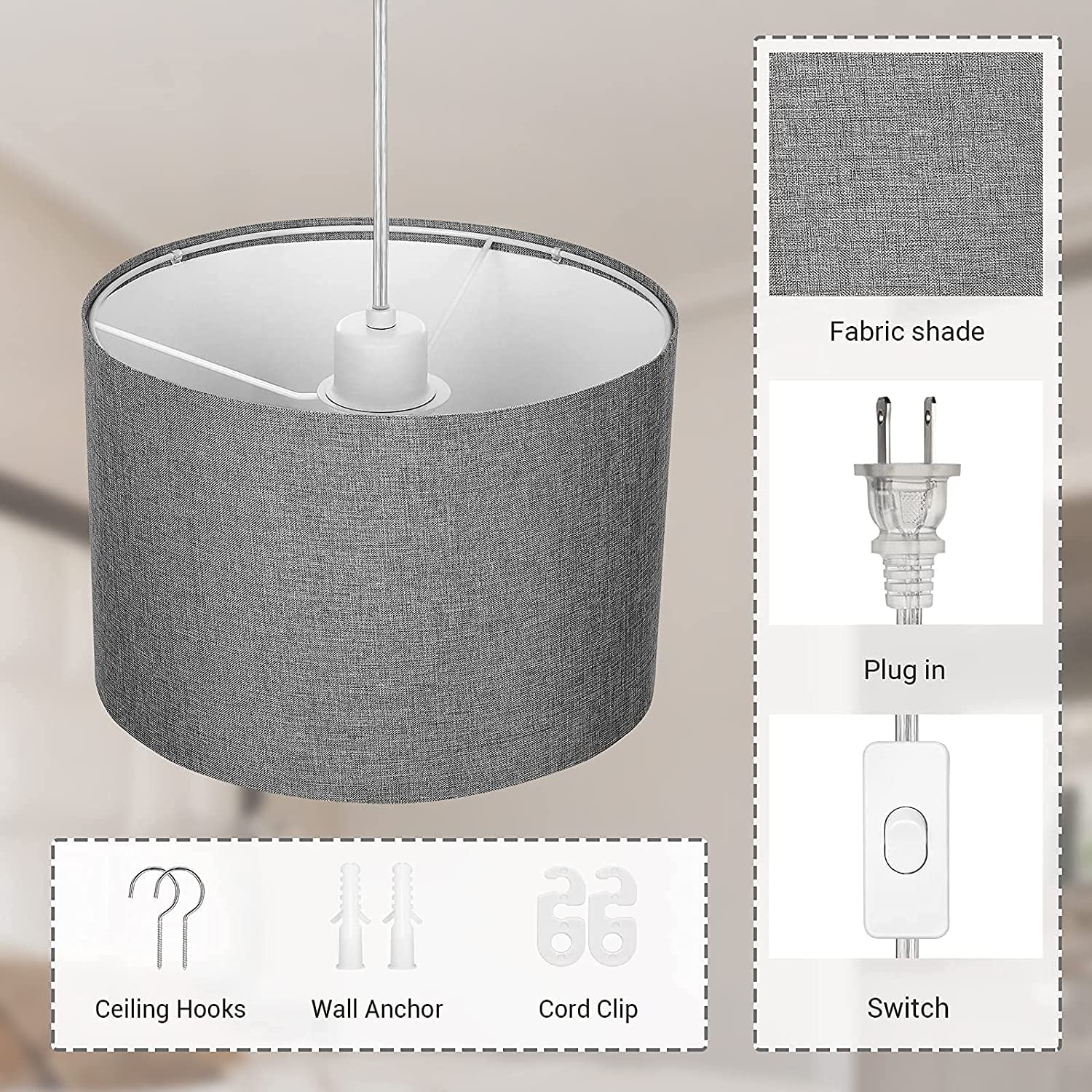 DEWENWILS Plug in Pendant Lighting,Hanging Lamp with 15ft Clear Cord