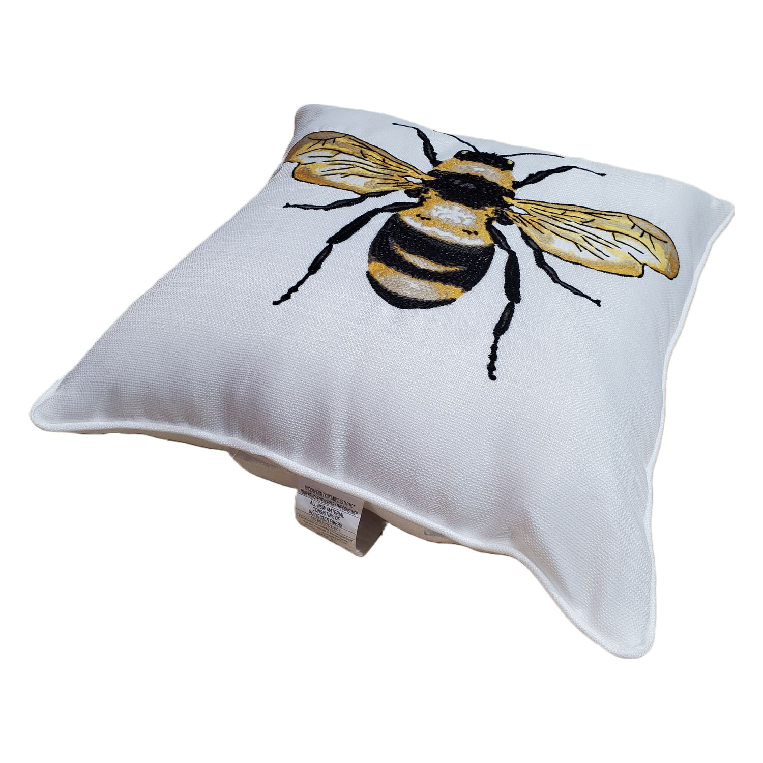 HOME FASHION INTERNATIONAL O’Linen Rectangle Outdoor Pillow in Embroidered Bee, 19 In x 19 In