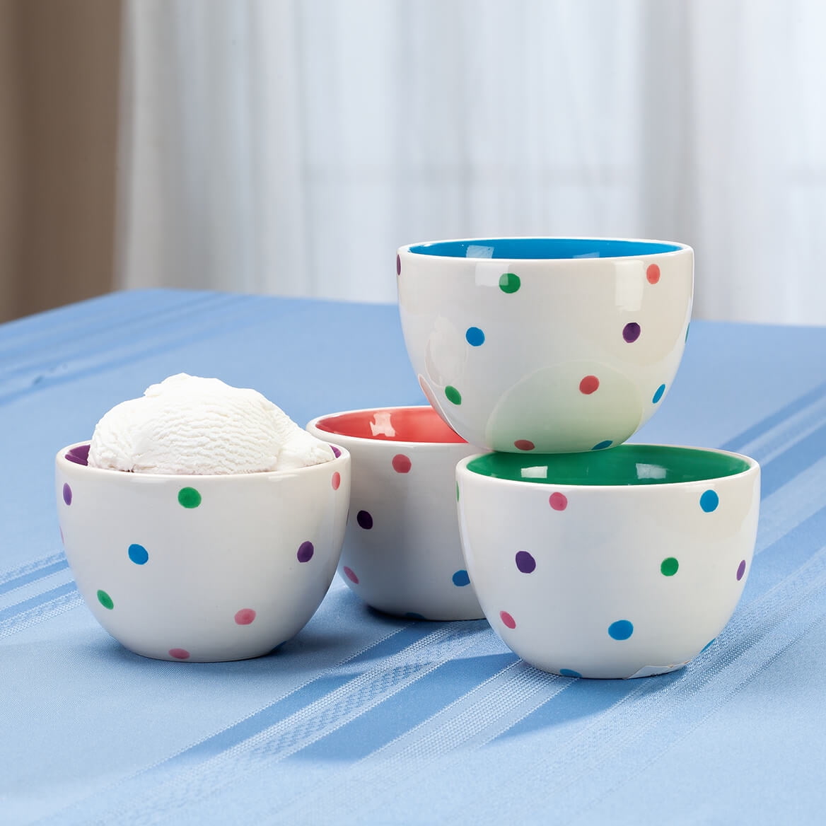 All-Purpose Ceramic Bowls by William Roberts, Hand-Painted Polka Dot Design, Set of 4