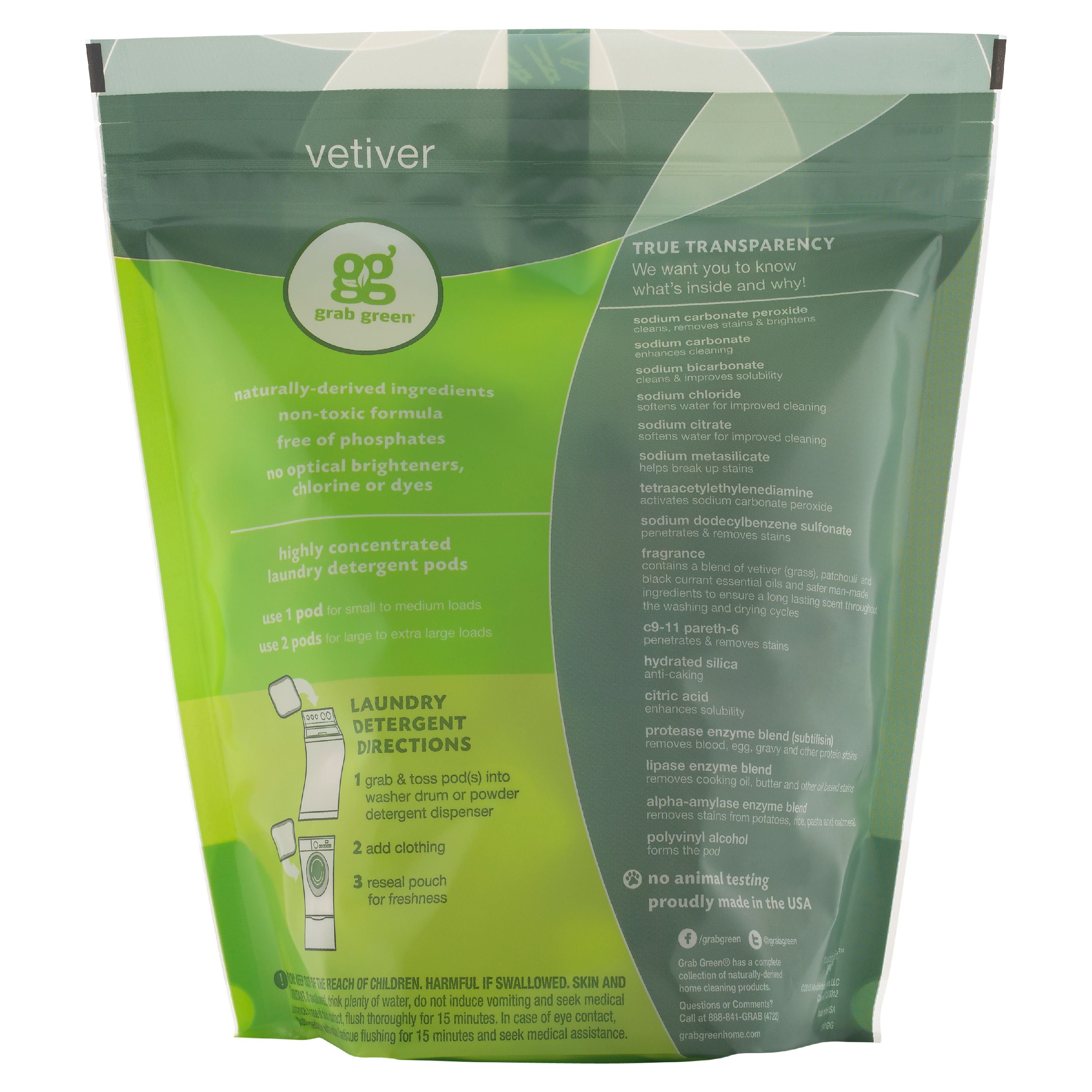Grab Green Natural 3 in 1 Laundry Detergent Detergent Pre-Measured Powder Pods, Vetiver, 60 Loads