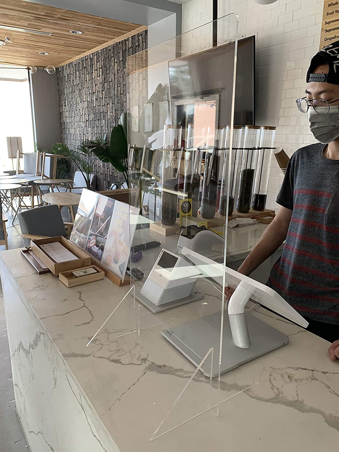 Sneeze Guard – Acrylic Divider Protection Barrier Shield Checkout Counter Desk (24′ W x 16′ T 1/8′ thk)