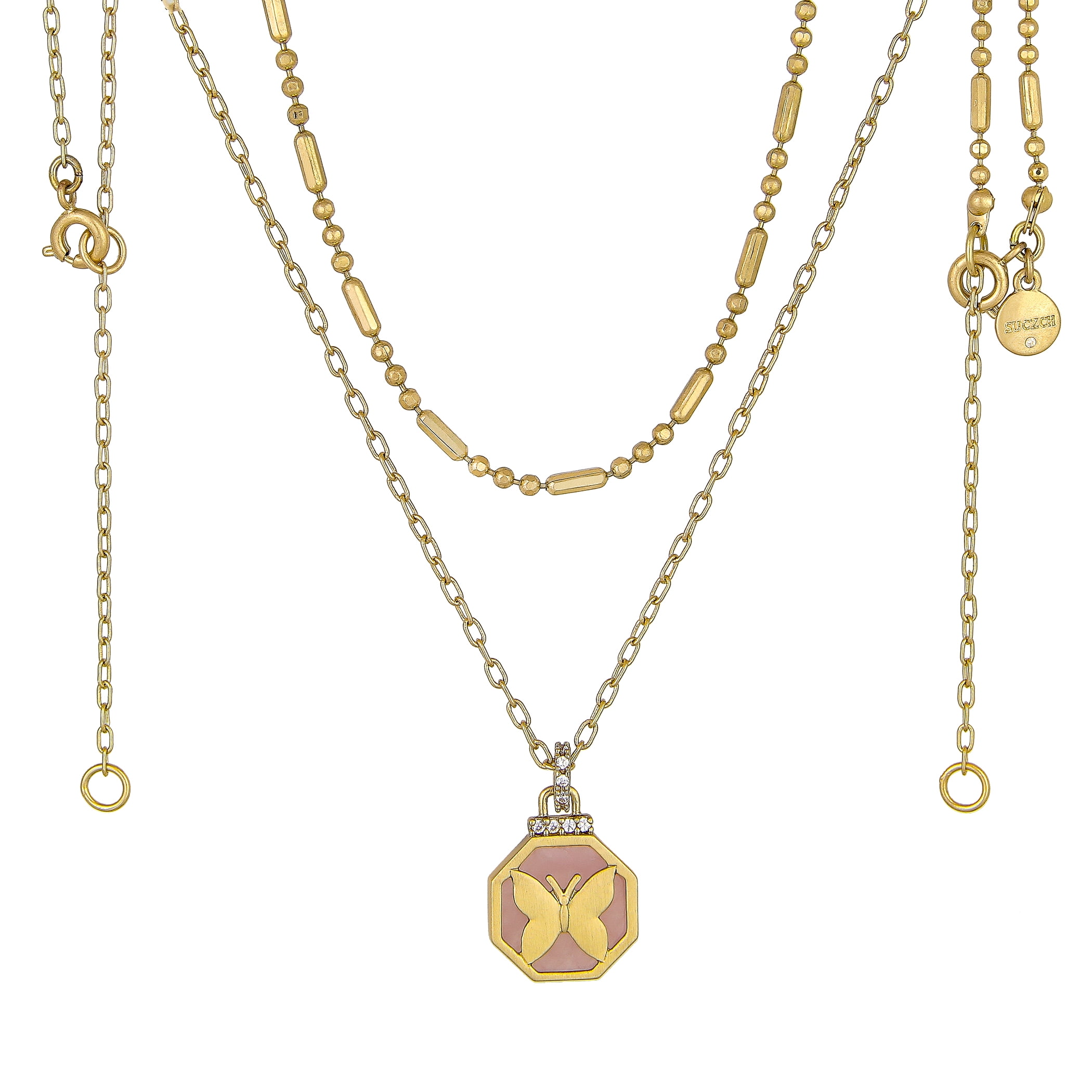 Believe by Brilliance 14KT Gold Flash Plated Double Necklace Set with Genuine Stone