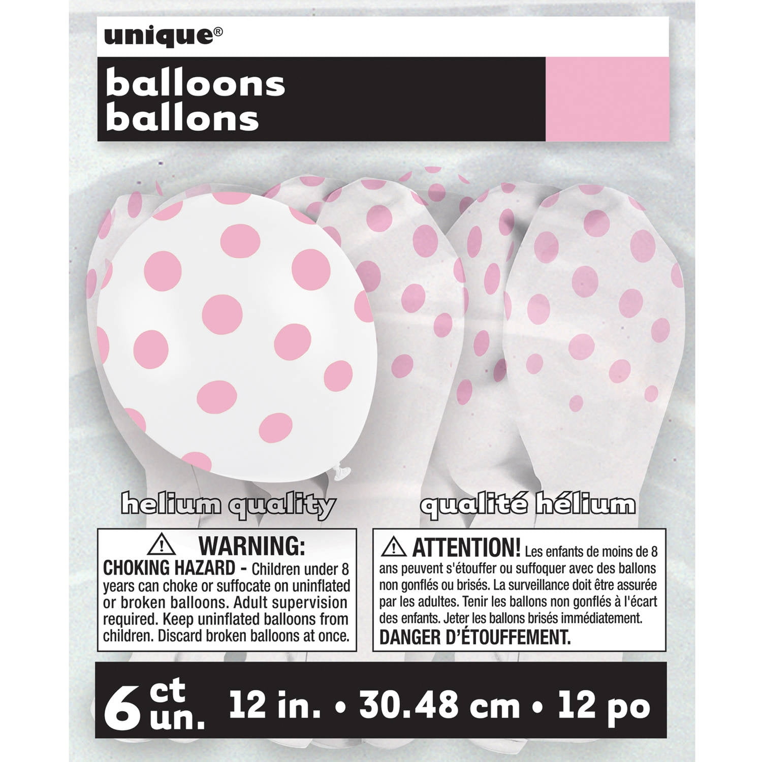 Unique Industries Latex 16′ White Polka Dot Balloons, 6 Count