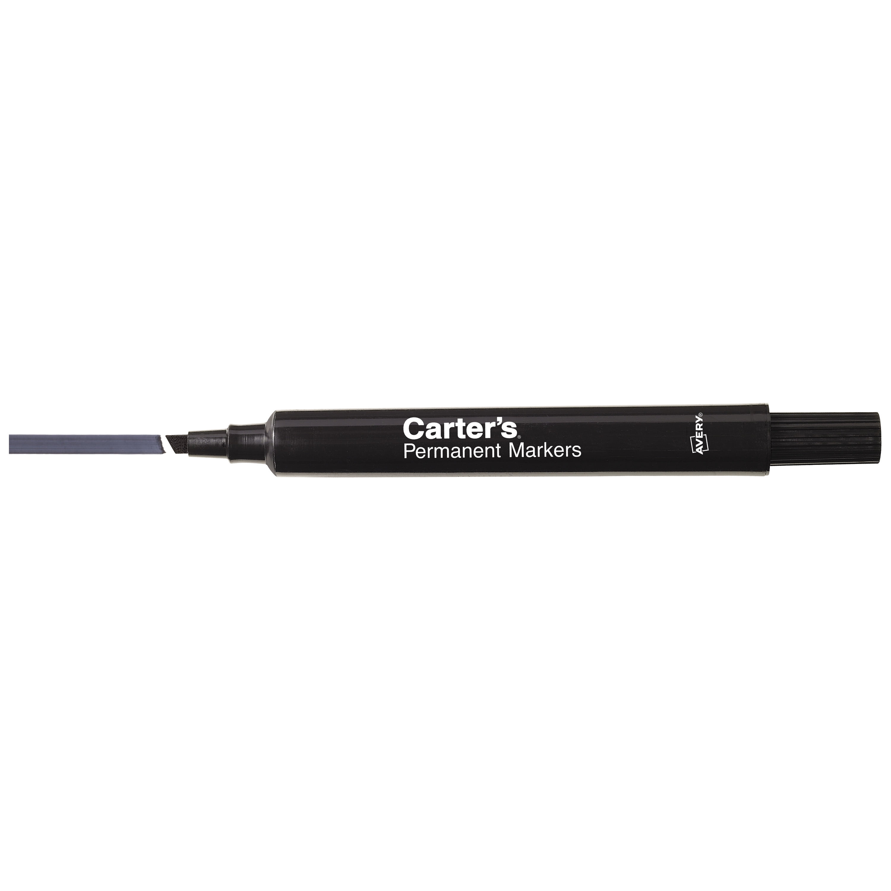 It’s easy to leave your mark with Avery Carter’s Permanent Markers. Each long-lasting permanent black marker features a durable chisel tip that allows you to create various line widths and sizes and is designed not to fray over time. These large, thick markers hold over 30% more ink than regular desk-style markers, and the remarkable black ink dries quickly so you don’t have to worry about smears and smudges. The permanent ink also resists water, wear and fading, making this marker a great choice for almost any project. Enjoy smooth writing on most surfaces, including paper, cardboard, plastic, ceramic, metal and more. Create yard sale signs, label sports equipment, mark boxes in warehouses and more with these permanent chisel tip markers. Avery permanent markers are perfect markers for kids, craft markers and classroom markers, as they are non-toxic and low-odor. The ink is also ACMI certified as non-toxic and conforms to ASTM D4236. Item includes 2 packs for a total of 24 black chisel tip markers.