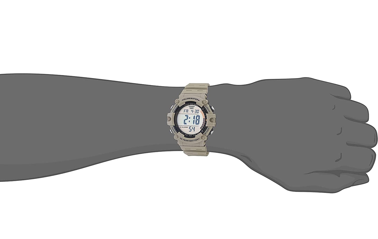 Introducing Casio’s new 100 meter water resistant large LCD HD digital AE1500WH-5AV. This tan resin with white positive screen men’s standard digital watch comes equipped with 10 year battery, LED backlight and a large crisp digital display that is easy to read.