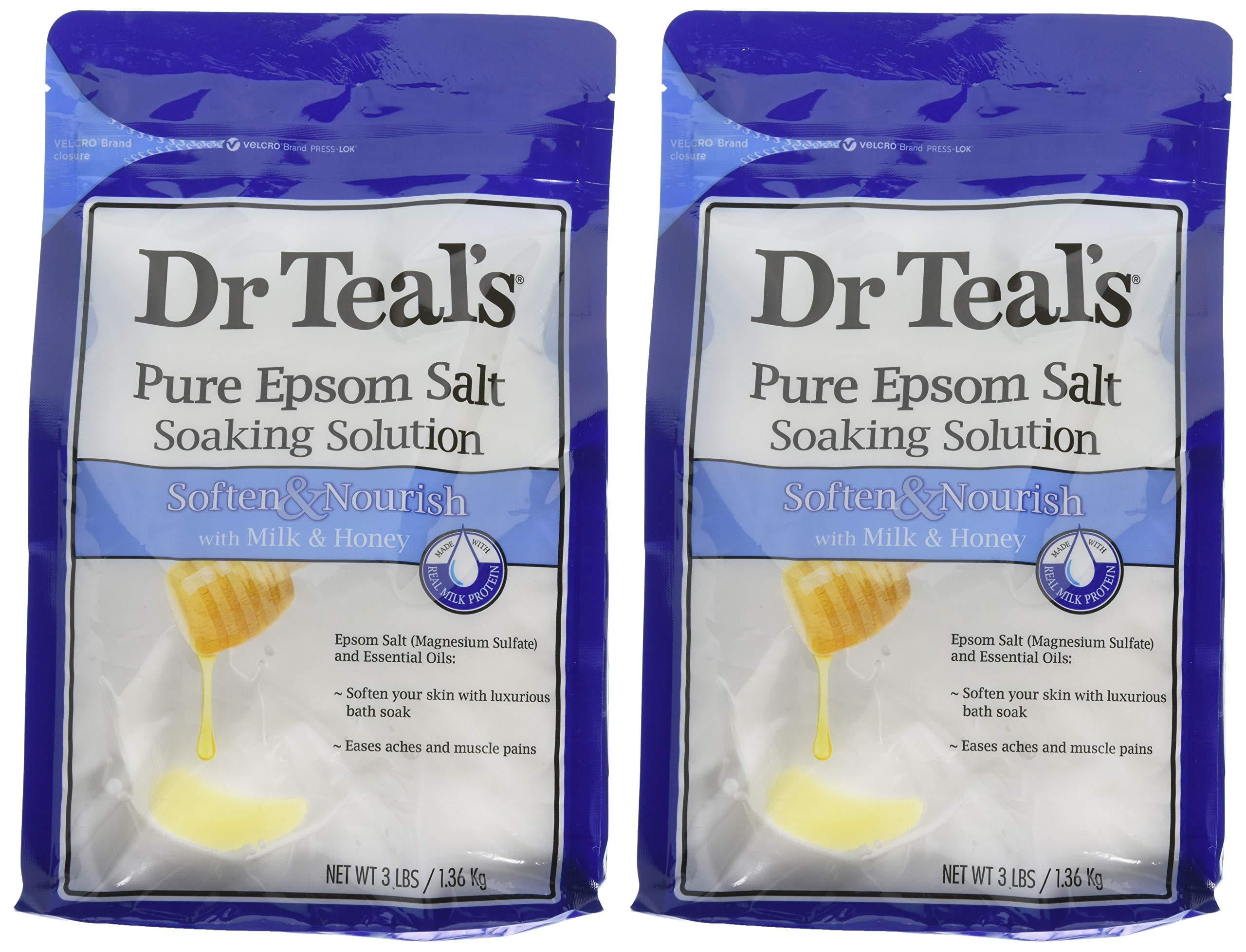 Dr. Teal’s Epsom Salt Soaking Solution, Soften & Nourish with Milk and Honey, 48oz, Pack of 2