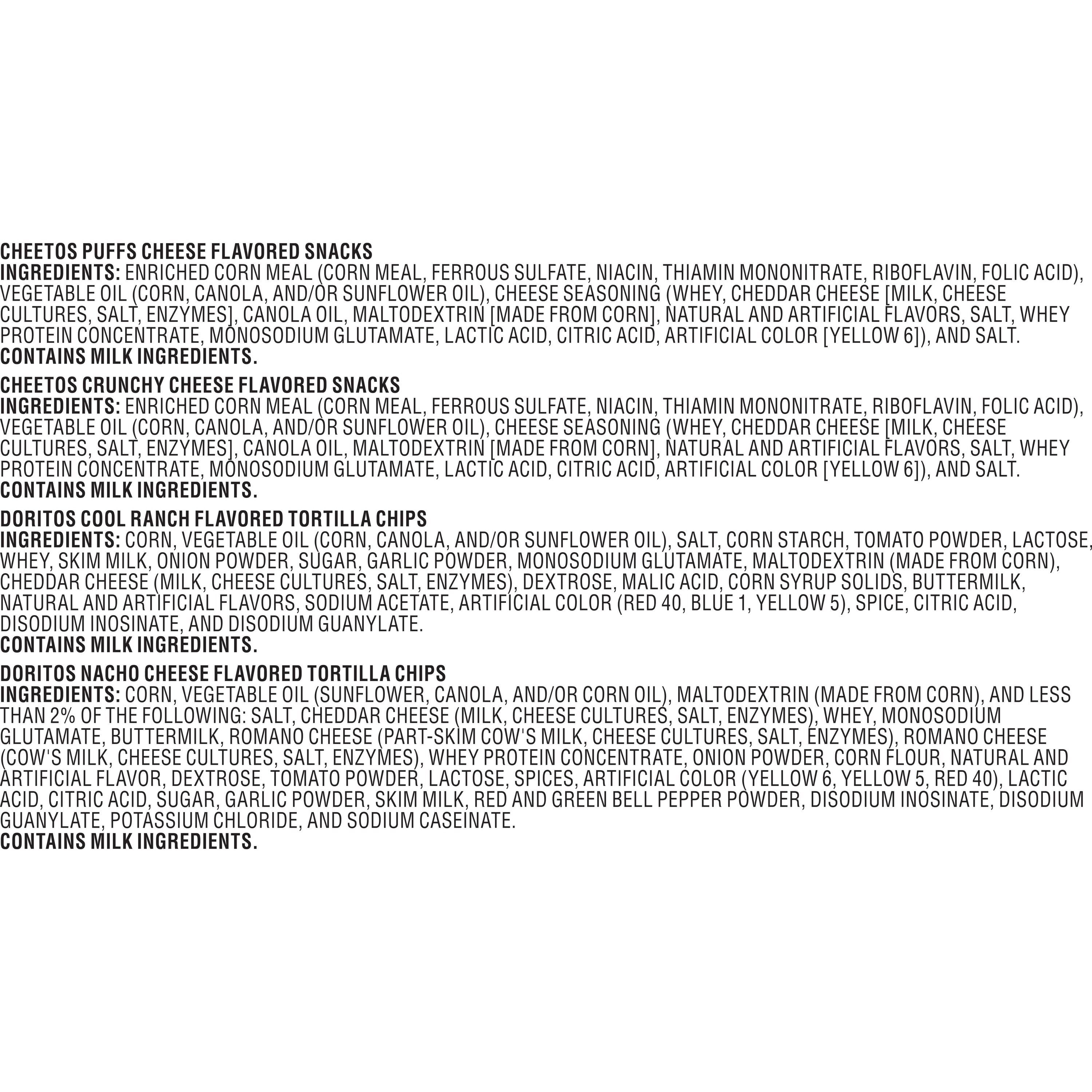 - Variety pack of your favorite Doritos flavored tortilla chips and Cheetos cheese snacks flavors in one convenient package