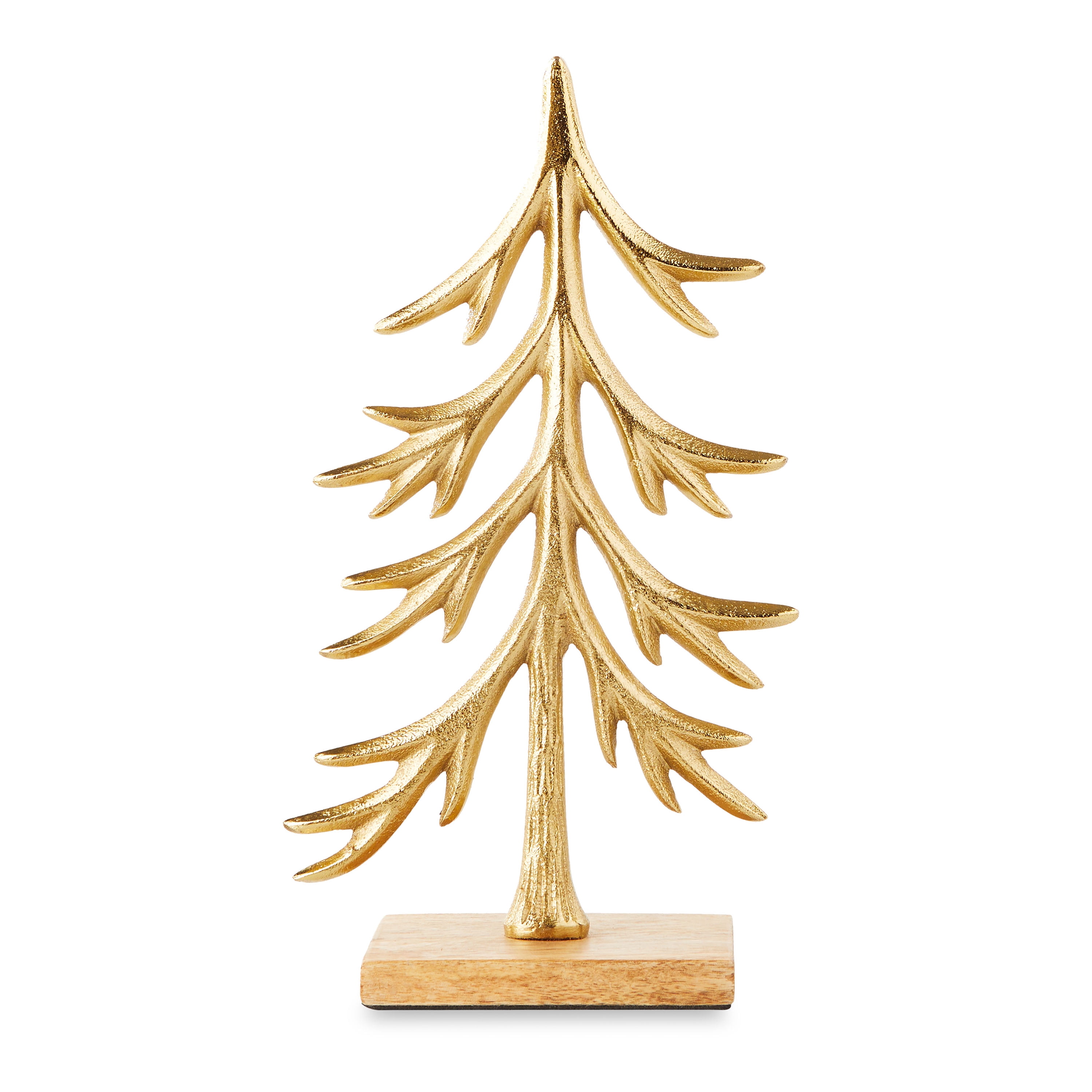 The Holiday Time Freestanding Gold Tree Decorations create a stunning look anywhere it is placed and is sure to get everyone into the Christmas spirit. Sitting atop a sturdy block of wood for easy placement anywhere, the tree is crafted of alumimum with a brown, wood-like base for a signature style that will capture the imagination of your family and guests. The Holiday Time Freestanding Gold Tree Decoration is perfect for placing on mantels, tables, in entranceways and foyers, or as part a delightful centerpiece for your holiday table. Prepare your home for Christmas gatherings with our Holiday Time collection of products. Walmart carries a large variety of unique and special holiday items for all your decorating needs. Don’t forget to shop .com for more Holiday Time exclusive, coordinating products to help complete your festive Christmas decor. You’ll enjoy creating a special place for your friends and family to celebrate the holidays.