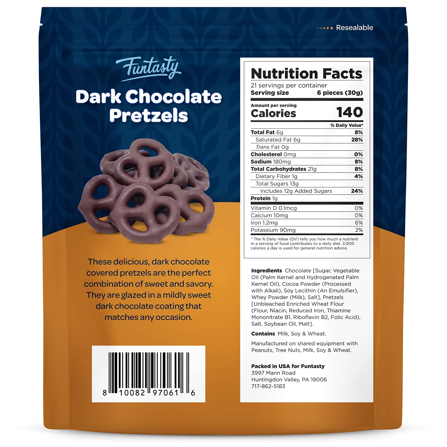 Funtasty Dark Chocolate Covered Pretzels, Sweet & Salty Crunchy Snack, 22 Ounce Bag