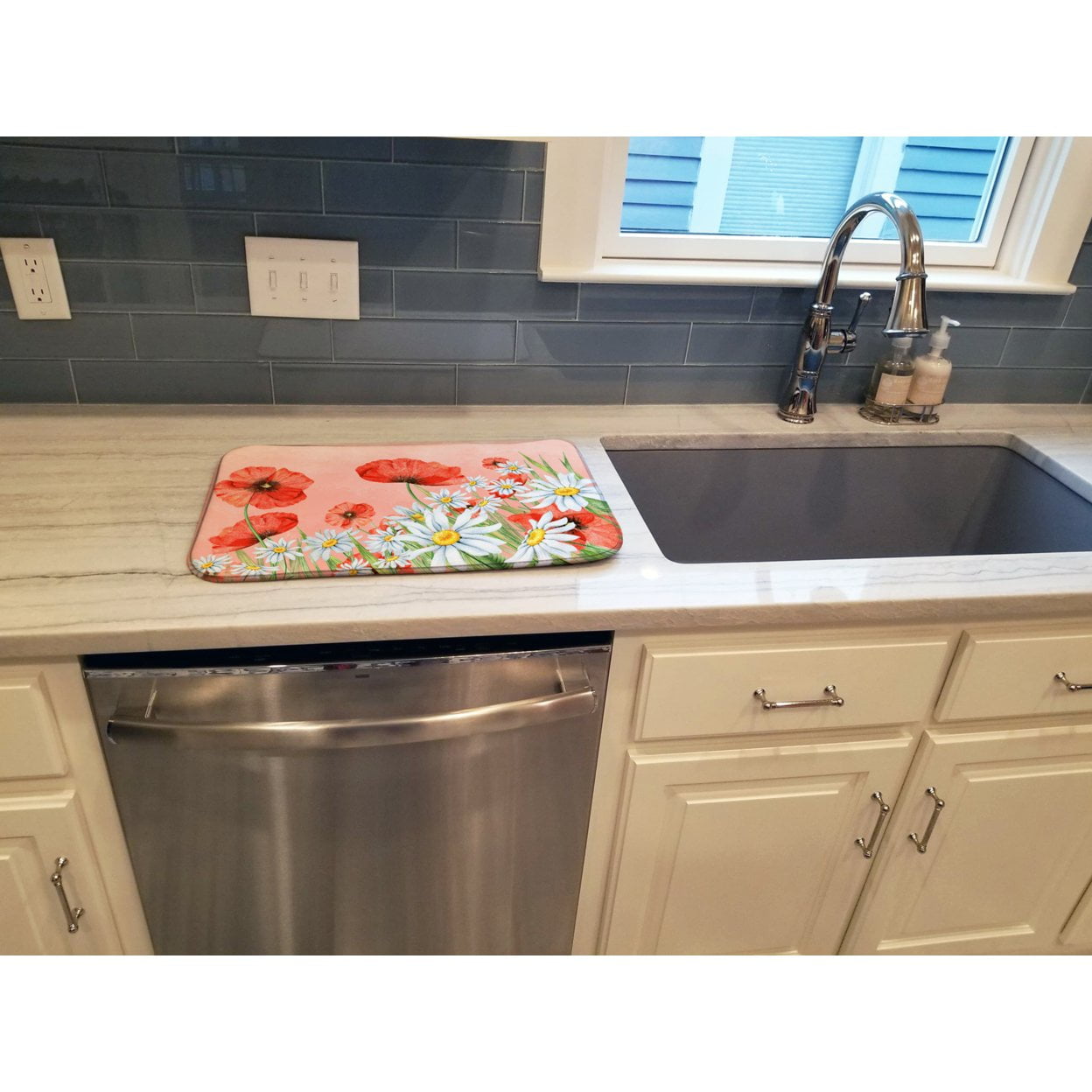 Tired of setting dishes on an old towel? Well fret no more when you set your eyes on this decorative dish mat! It measures 14 inches x 21 inches and features a water-absorbent polyester face, polyurethane foam insert, polyester mesh lining and a binding edge finish. Add a touch of flair and functionality to the kitchen by ordering yours today!Add a touch of flair and functionality to the kitchen