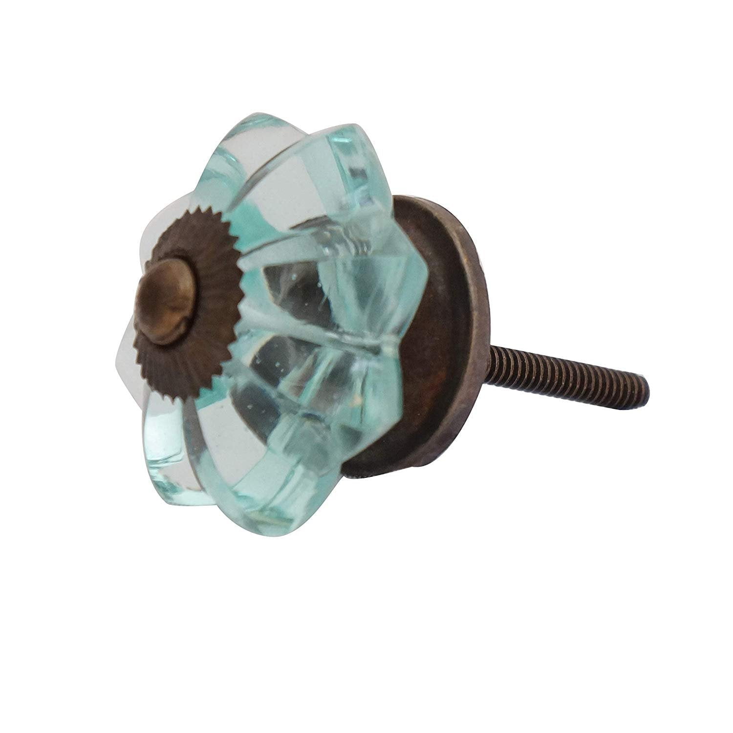 These are beautiful handcrafted set of 6 Piece Light Blue Melon Glass Knob. These are of Great Quality Hand made cabinet Pulls makes your Kitchen , Home Office very unique. We make our Knobs using high class raw material than other Sellers . Our quality controllers are very strict in quality control of each product. Look wise These knobs are very pretty. These Knobs always supplied with Standard Size Hardware and plastic washers .