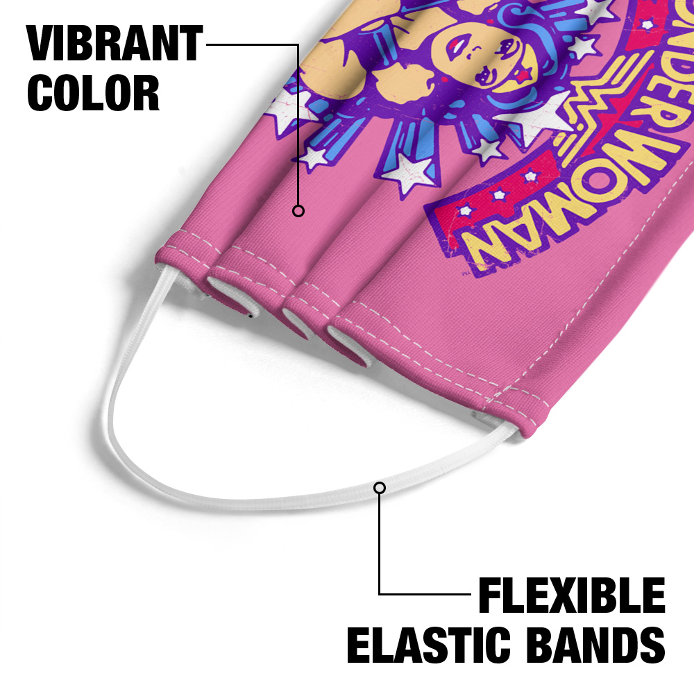 - WONDER WOMAN STAR CROSSED FACE MASK – Our 100% polyester mask is made with 1 layer that is printed with your favorite design.