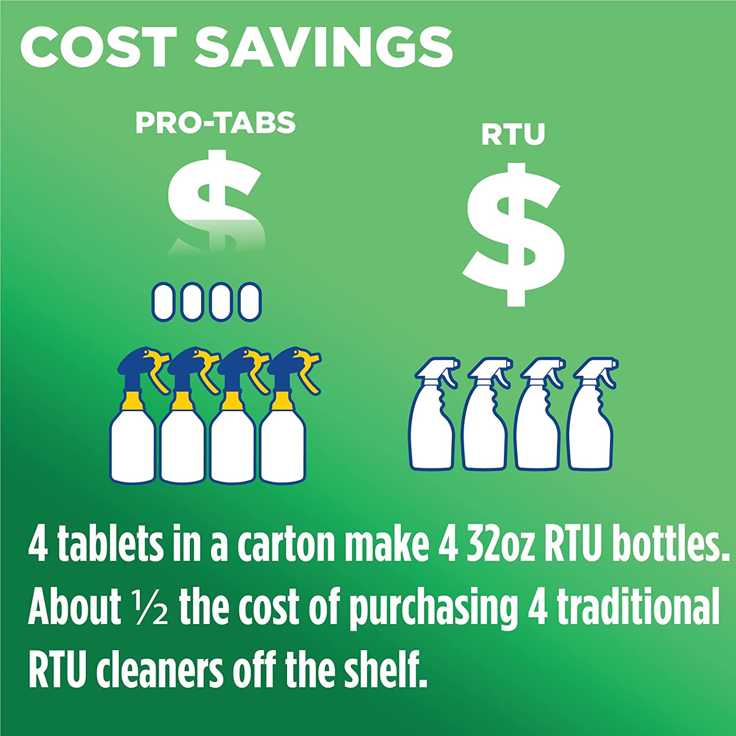 - 1 tablet makes a 32oz RTU cleaner