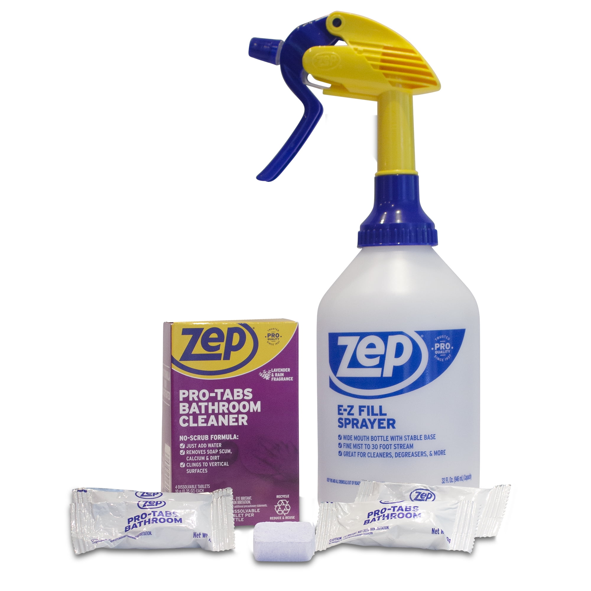 Zep Pro-Tabs are the easy-to-use, concentrated tablets that deliver pro-trusted cleaning power with less waste and impact to the environment. Just add water, and use Zep Pro-Tab cleaners as you would any of your professional strength ready to use Zep Cleaners. One tablet makes 32oz of cleaner.