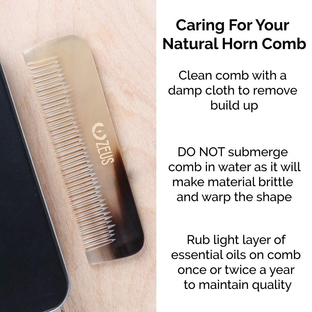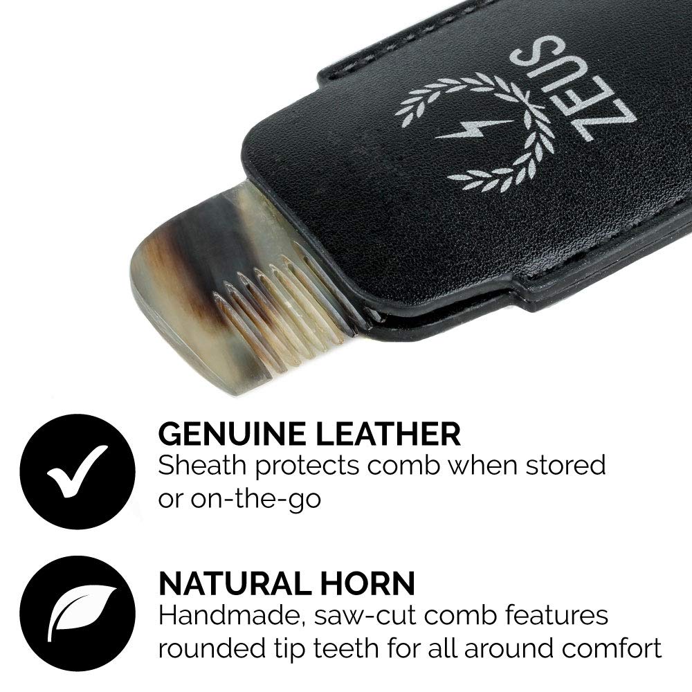 ZEUS Natural Horn Medium Tooth Beard Comb in Leather Sheath – Beard Comb for Men