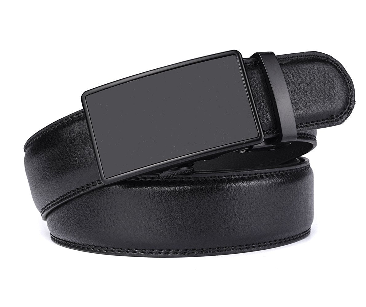 Xhtang Men’s Solid Buckle with Automatic Ratchet Leather Belt 35mm Wide 1 3/8′
