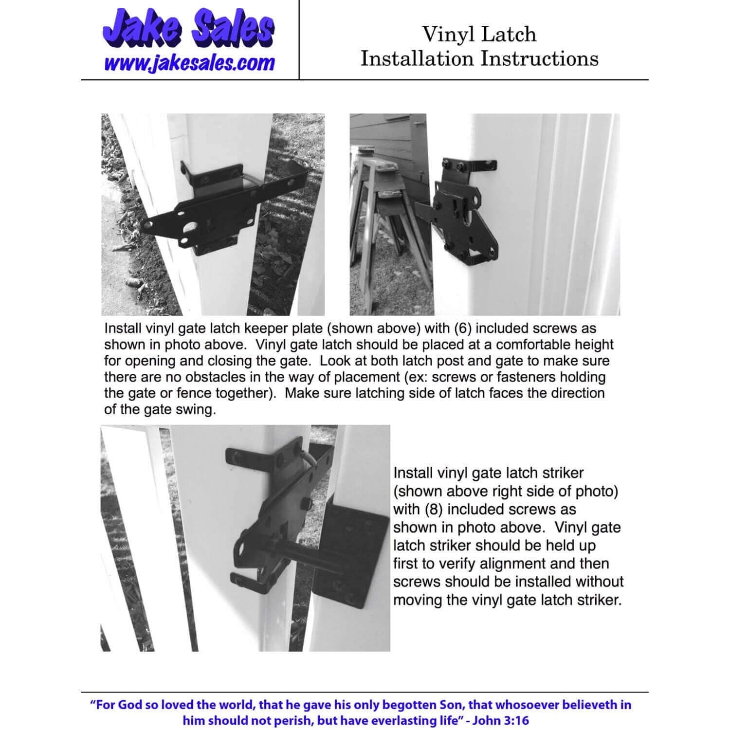Jake Sales Brand – Black Vinyl Fence Gate Latch – Adjustable – For Wood or Vinyl/PVC Fencing – Each