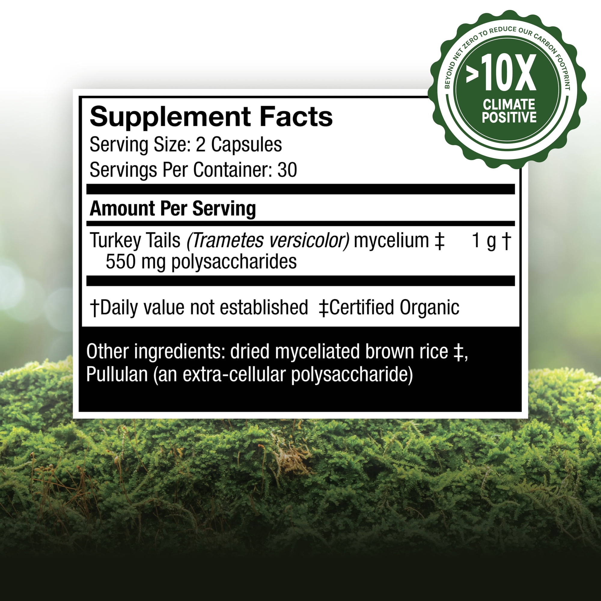 Host Defense, Turkey Tail Capsules, Natural Immune System and Digestive Support, Daily Mushroom Mycelium Supplement, USDA Organic, Gluten Free, 60 Vegetarian Capsules (30 Servings)
