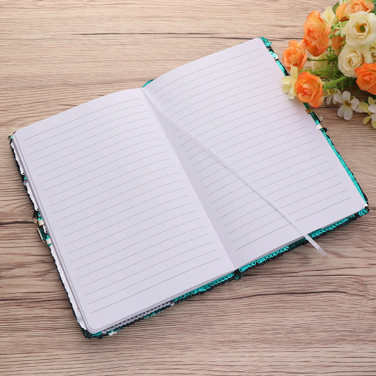 Mermaid Pattern Sequin Journal Notebook Writing Notebook Planner Personal Diary Organizer with Lock (Light Green+Silver)