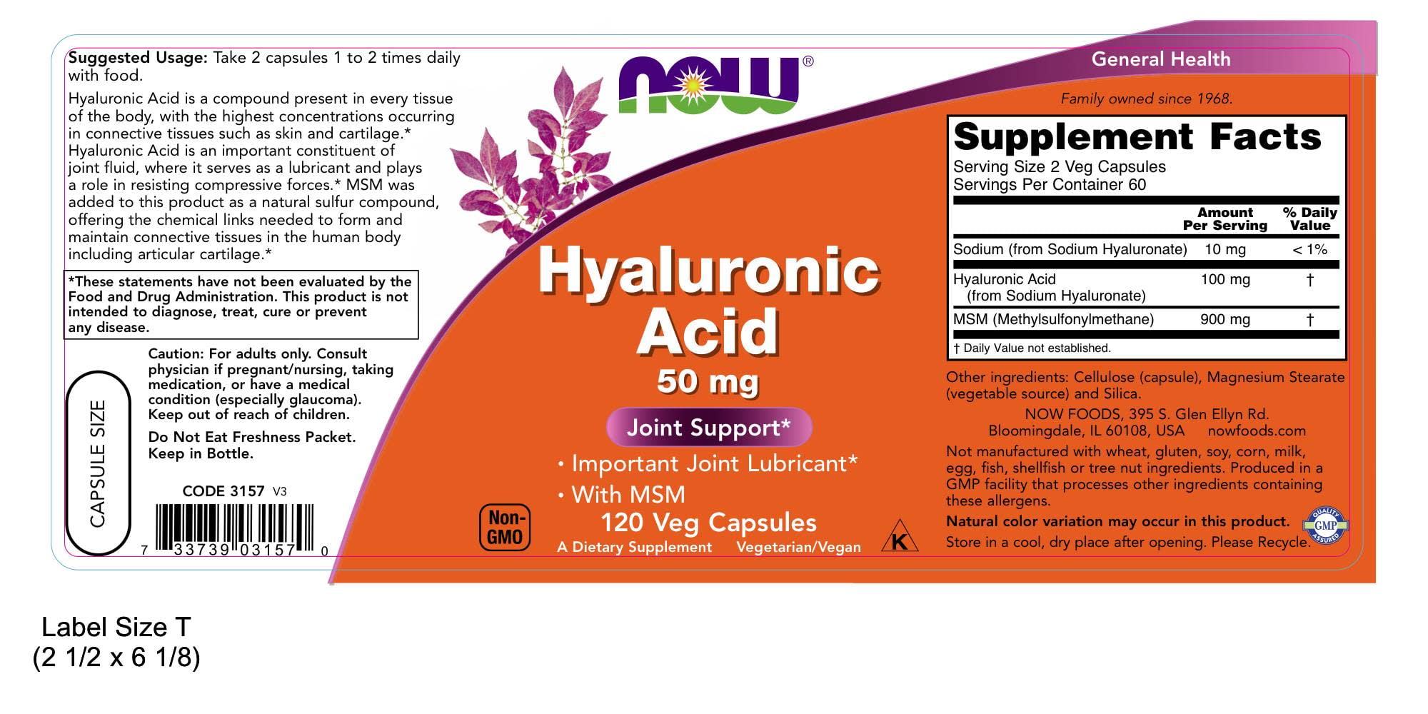 NOW Supplements, Hyaluronic Acid 50 mg with MSM, Joint Support*, 120 Veg Capsules