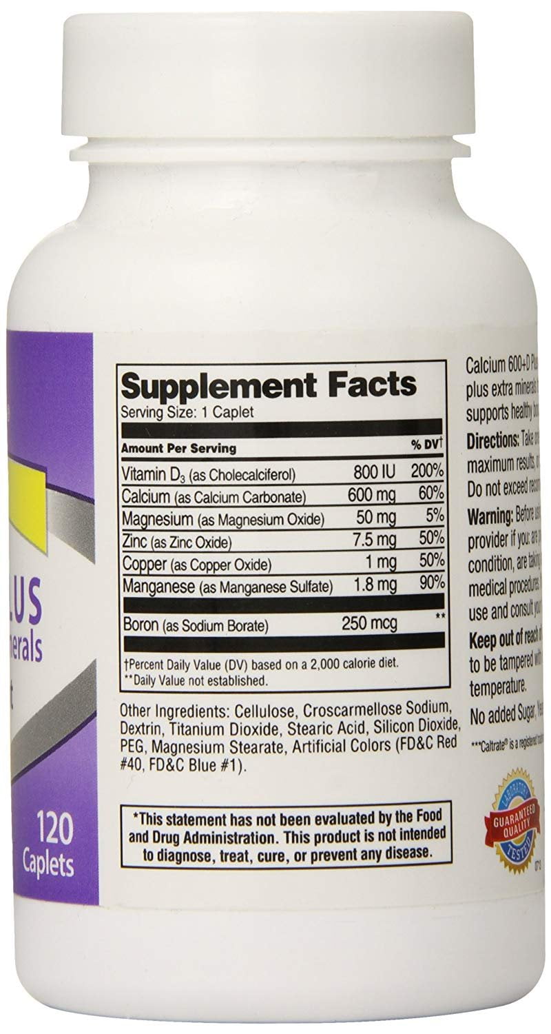 21st Century Calcium 600 Plus D Plus Minerals Caplets, 120 Count