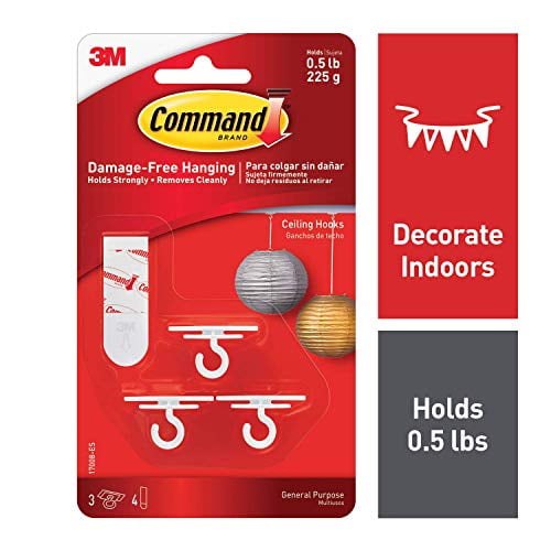 Command 17008-ES Ceiling 9 Hooks, 12 Foam Strips per, White