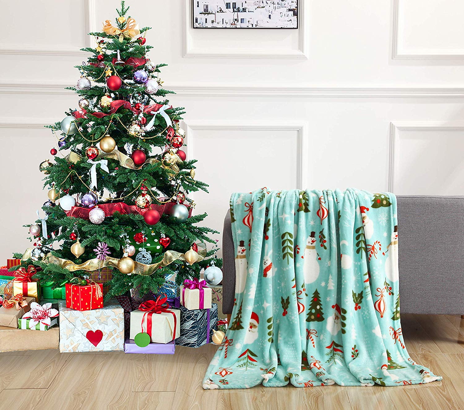 Throw/Blanket -Holiday Theme Gift 50 x 60’inch,Santa Snowman Teal