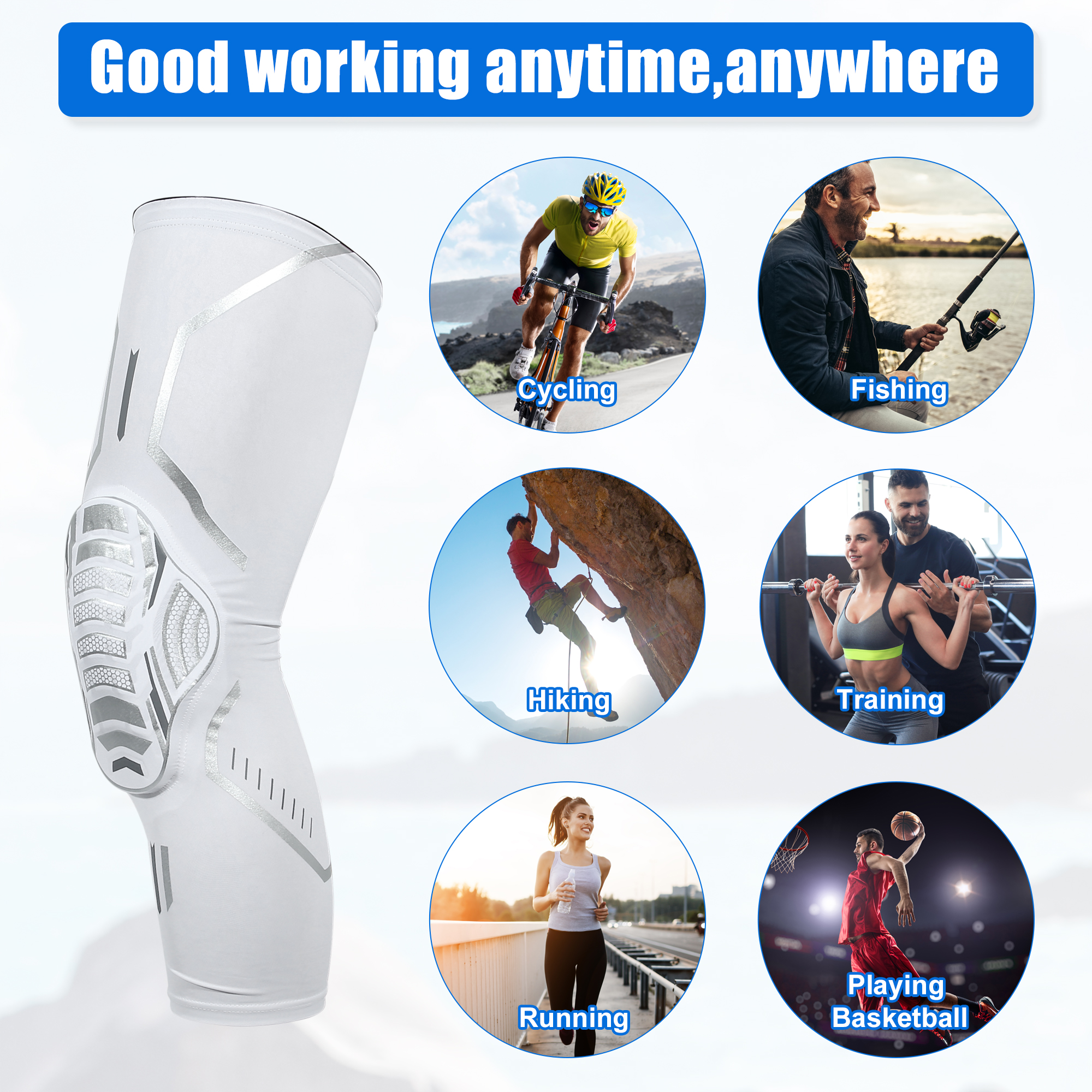 Vocoste 2pcs Compression Knee Braces EVA Padded Leg Sleeves Nylon White Size L