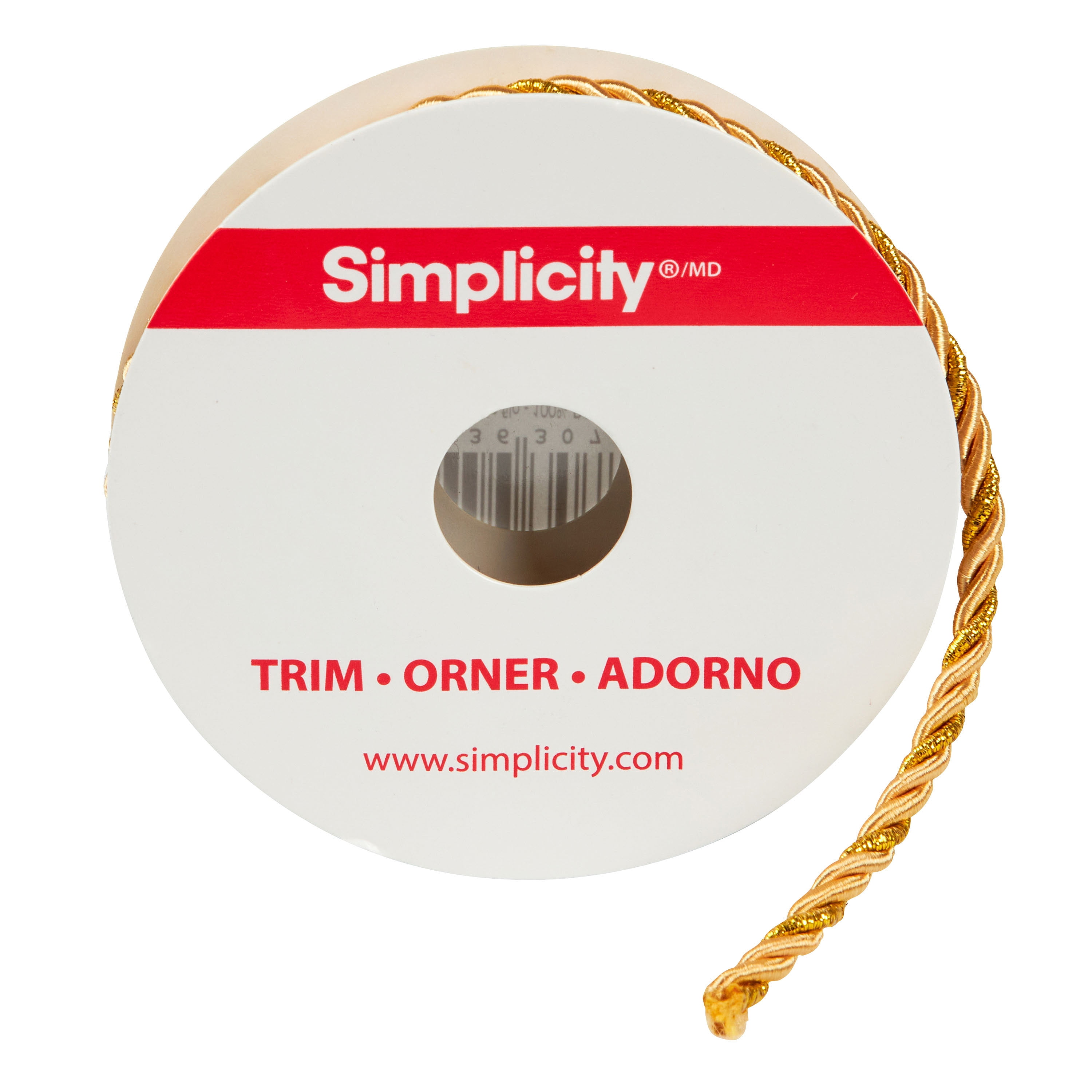 Simplicity Trim, Gold 3/16 inch 3 Ply Twisted Cord Trim Great for Apparel, Home Decorating, and Crafts, 2 Yards, 1 Each