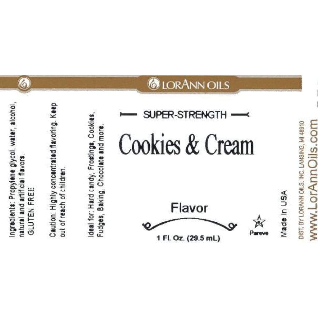 Candy & Baking Flavoring .125oz 2/Pkg-Cookies & CreamLORANN OILS-A twin pack of flavors or oils for candy making! Ideal for hard candy, chocolates, frostings, cookies, fudges, and baking. 4 times stronger than extracts! Package includes recipes! Each bottle has .125 fluid ounces inside. Made in USA.