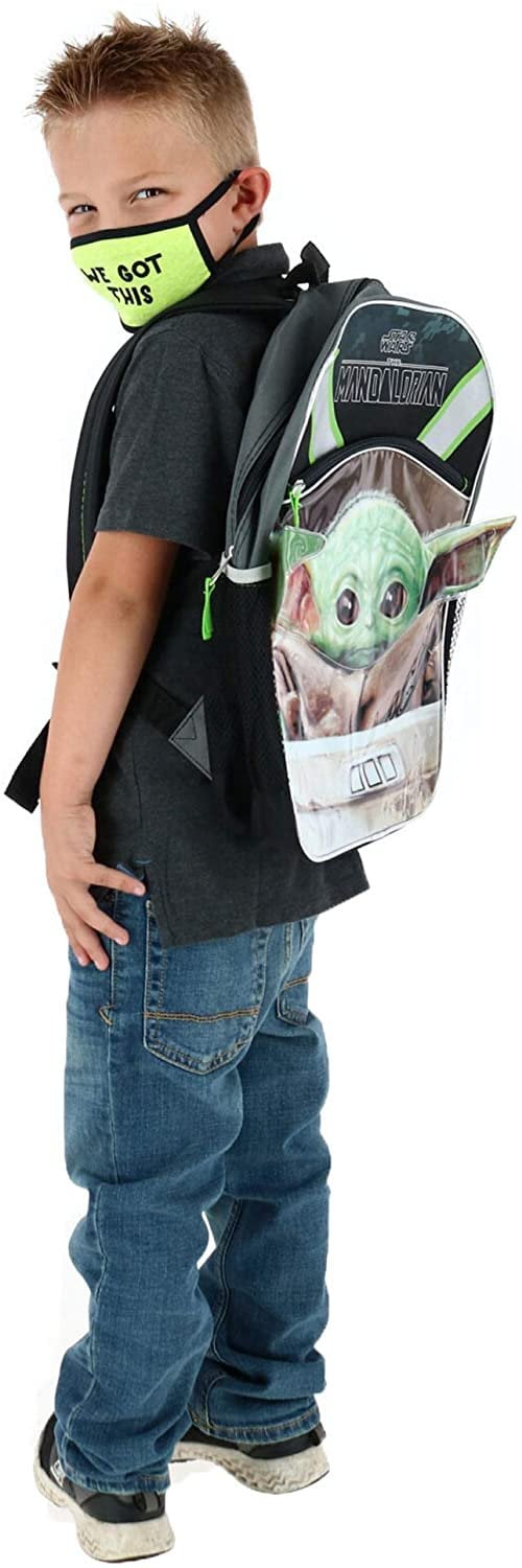 Star Wars 16′ Cargo Backpack Mandalorian Grogu Baby Yoda Wanted Front Pocket