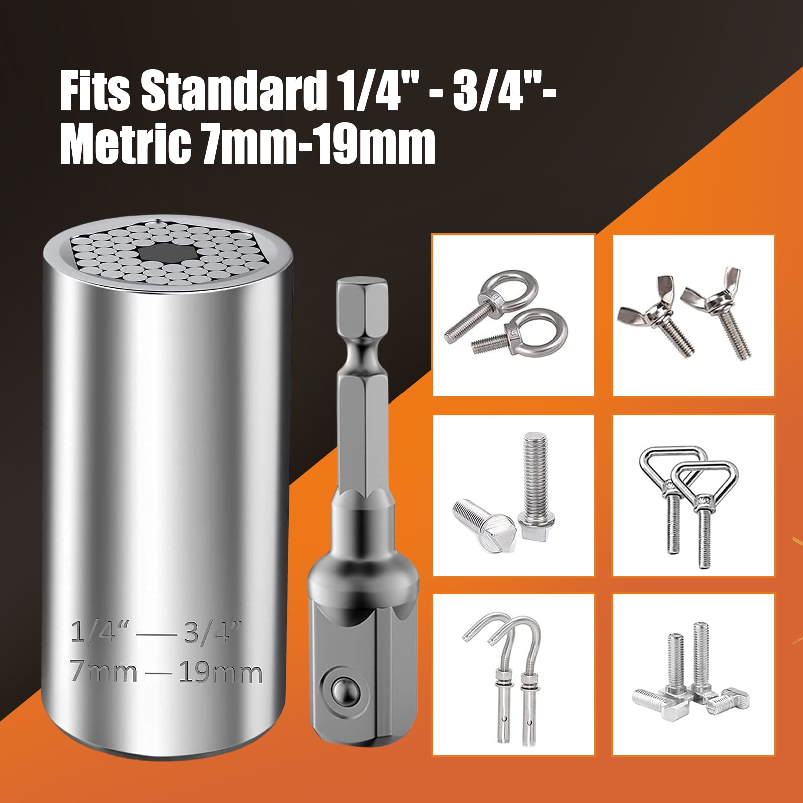 Saker Deals Today Universal Socket, Multi-function Universal Sockets, 7mm-19mm Professional Wrench Power Drill Adapter Unique Repair Tools