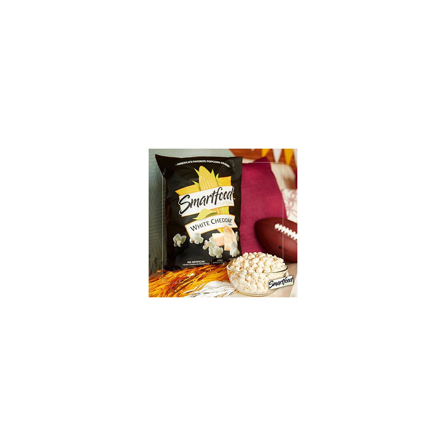 If you love Smartfood’s popcorn and you love cheese, Smartfood white cheddar cheese popcorn is a delicious choice. Made with real white cheddar cheese, it’s bursting with amazing cheese flavor in every air-popped bite. Best of all, Smartfood White Cheddar popcorn is made with no artificial colors, flavors or preservatives. This 100% whole grain popcorn is also gluten free.