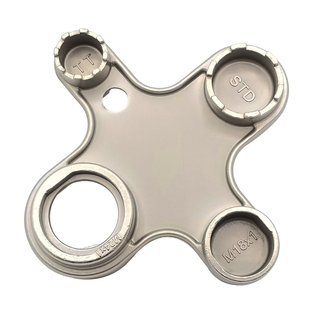 Thrifco Plumbing 4400276 The new multi-use aerator removal tool allows you to remove or install your aerator with ease. Overtime, aerators can get clogged with mineral deposits causing erratic or slow water flow, creating a need to clean or install a new aerator. This tool has an aerator wrench for internal or external threads, as well as four sizes of keys that fit most faucet brands. While wrenches and other tools can scratch or cause damage to the housing of the faucet, this aerator key was designed specifically for easy, non-abrasive installation and removal of your aerator.