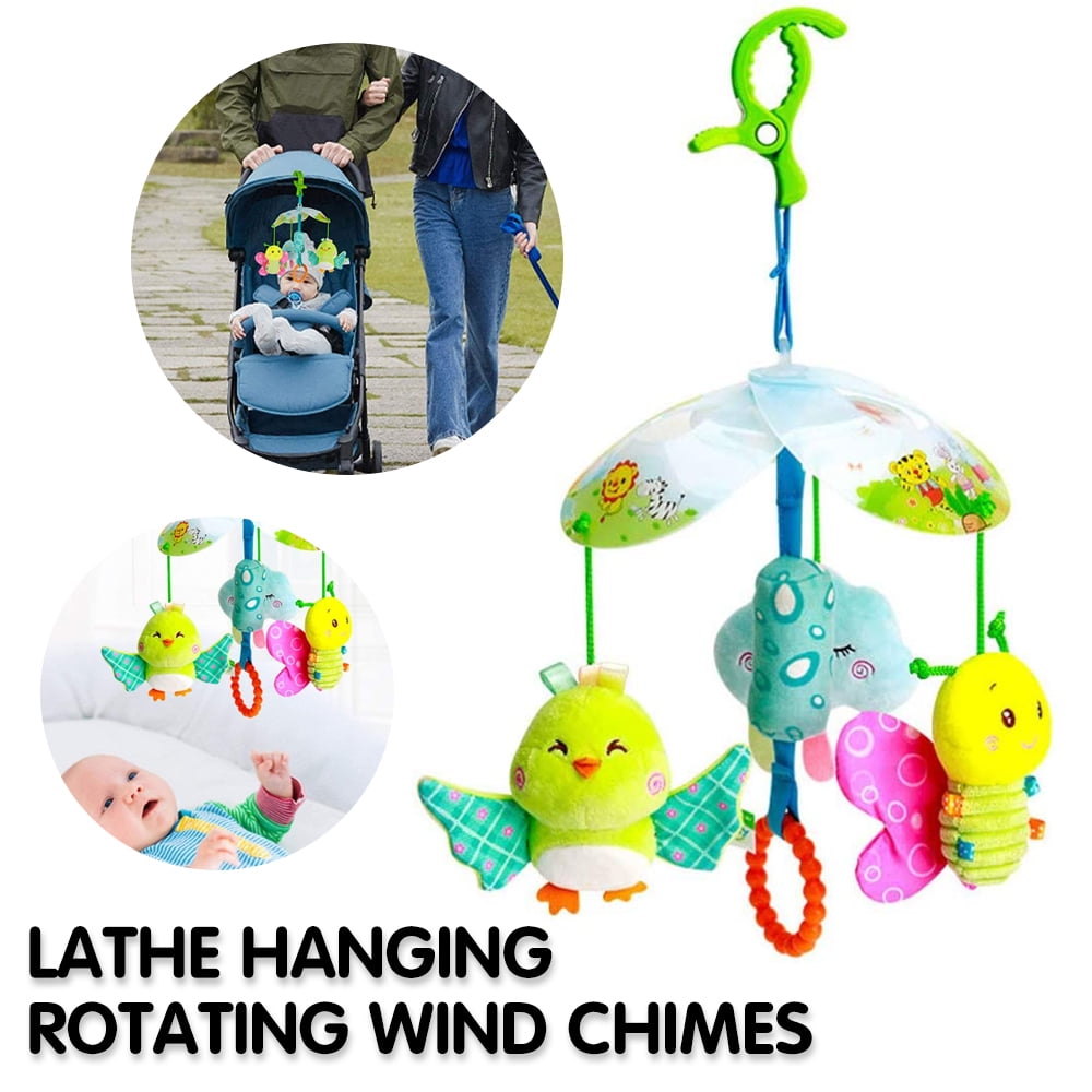 SHELLTON Baby Toys for 0 3 6 9 to 12 Months, Soft Hanging Crinkle Squeaky Sensory Learning Toy Infant Newborn Stroller Car Seat Crib Travel Activity Plush Animal Wind Chime with Teether for Boys Girls