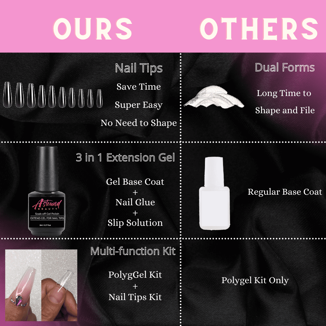 Nail Tips and Glue Gel Lazy Girl Polygel Nail Kit – 3 in 1 Nail Glue and Base Coat, Coffin Nail Tips with UV Lamp – All-in-One Polygel Kit
