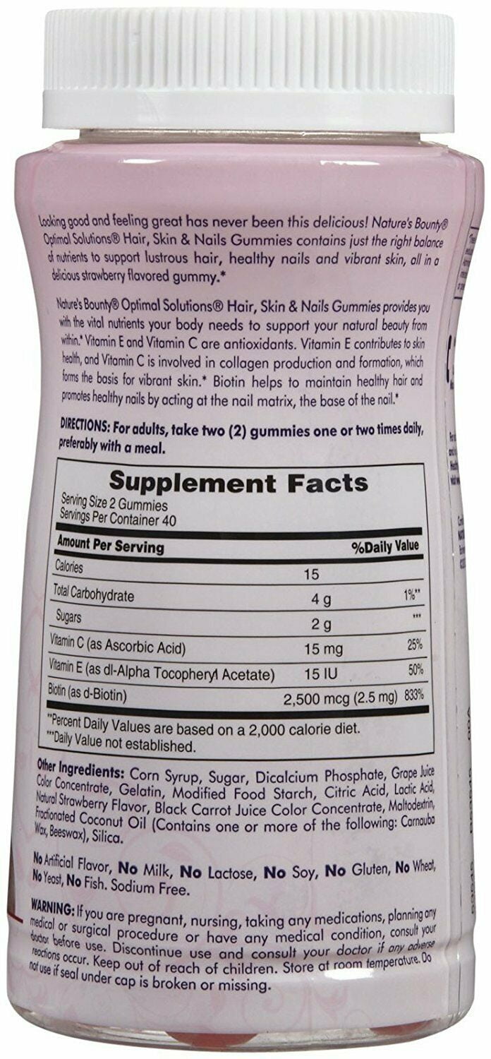 Nature’s Brand Bounty Optimal Solutions Hair Skin Nails Gummies, 80 Ct