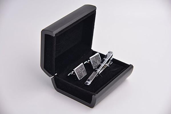 Christopher Chrome and Gray Square Cuff-Links and Tie Clip Set