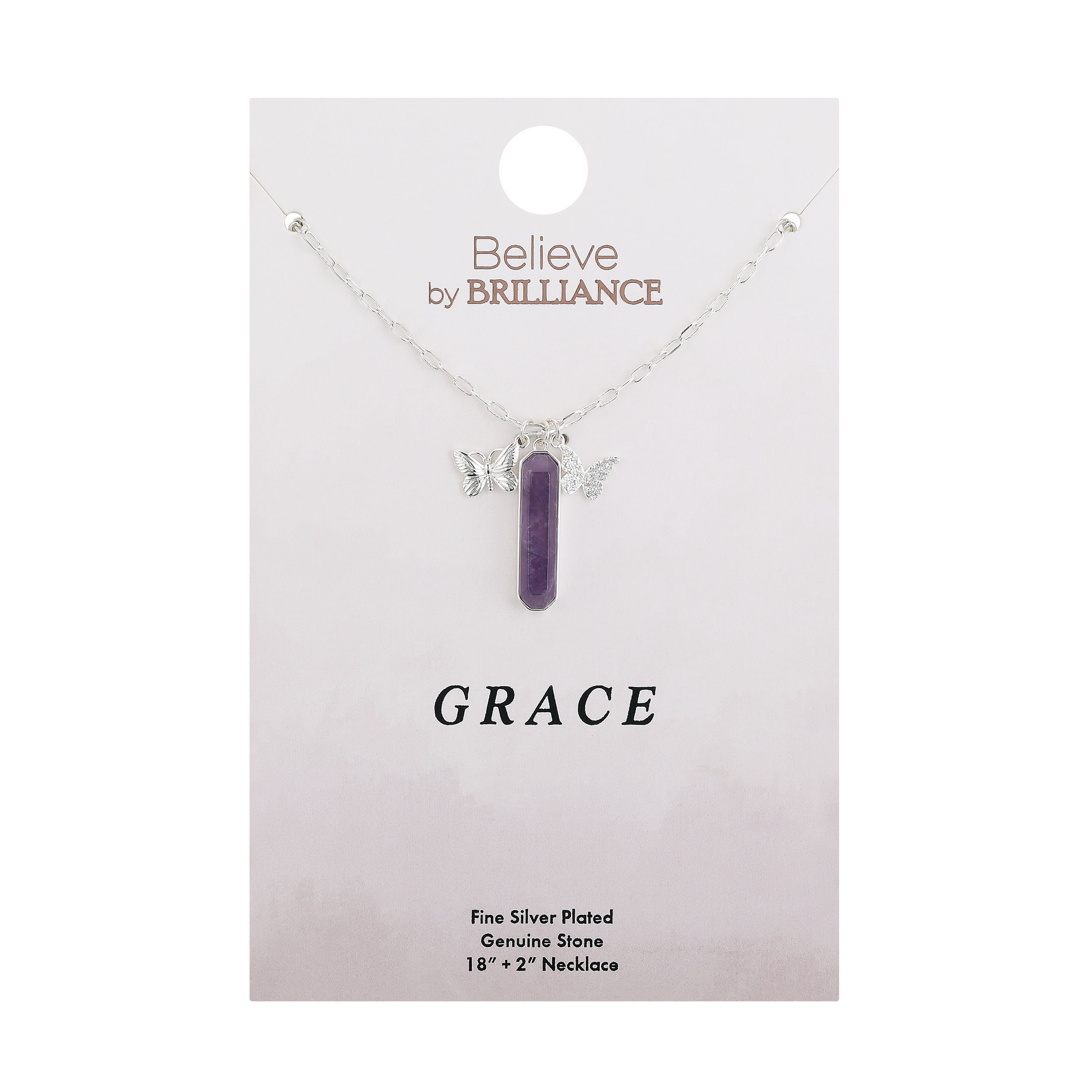 Fine Silver Plated Amethyst Cubic Zirconia Butterfly Charm Pendant Necklace, 18+2′ Extender