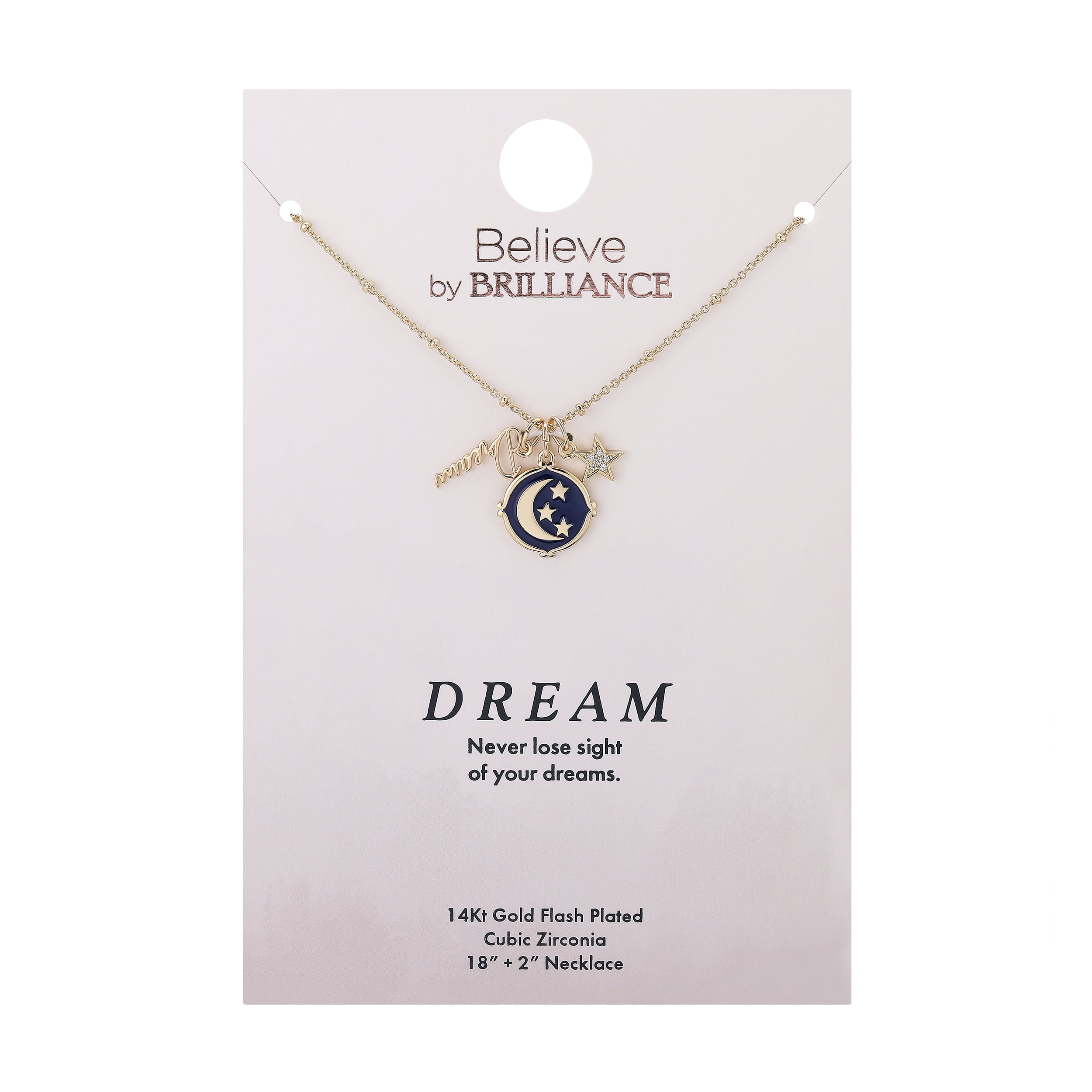 14Kt Gold Flash Plated Cubic Zirconia ‘Dream’ Charm Pendant Necklace, 18+2′ Extender