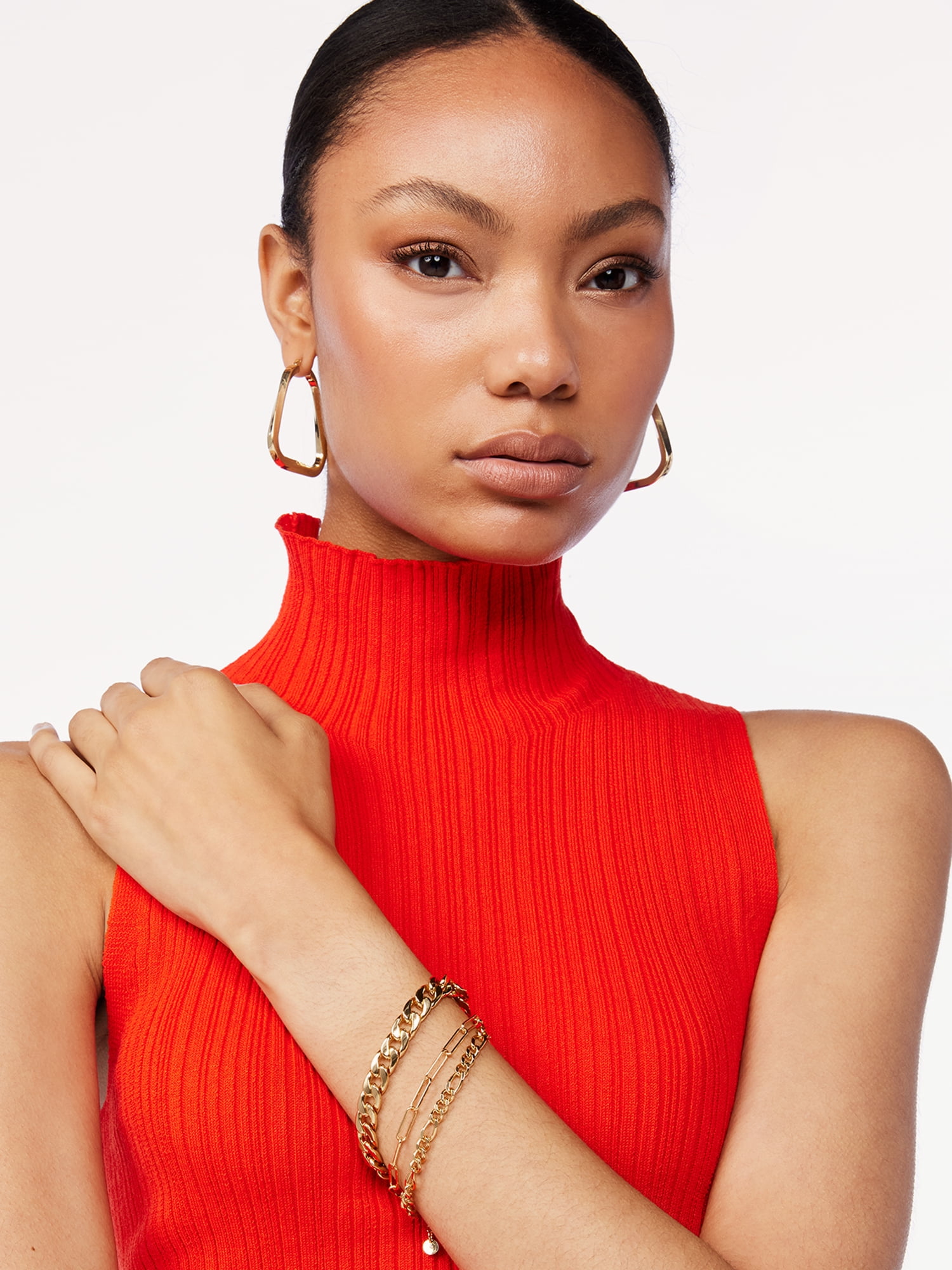 Scoop Womens Brass Yellow Gold-Plated Imitation Pearl Layered Necklace, 15′ + 3′ Extender