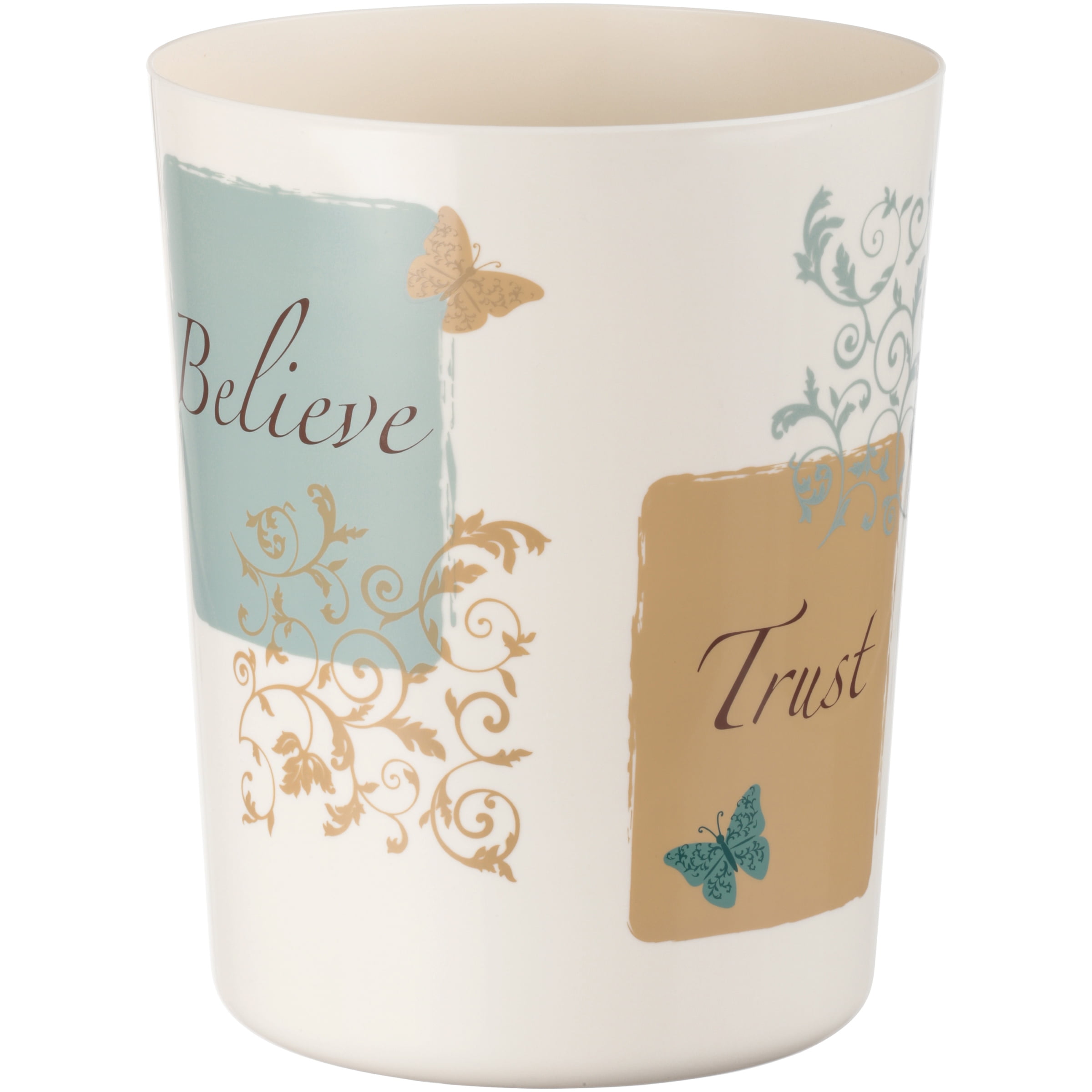 Mainstays Butterfly Blessings Bathroom Wastebasket, Natural, 9.34′ x 7.57′ x 7.57′